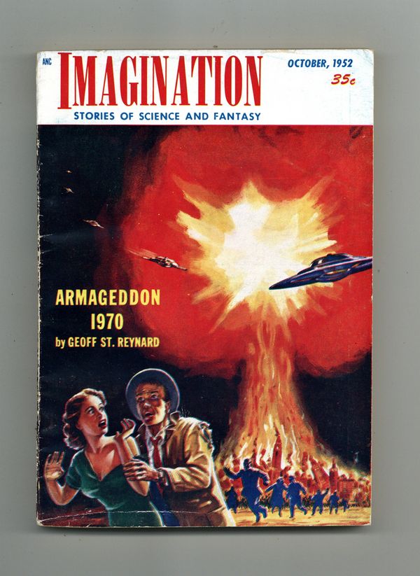 Published Oct 1952 by Greenleaf Publishing.$6.00Oct 1952. Cover by W. E. Terry. Science fiction stories by Geoff St. Reynard, Alan E. Nourse, John W. Jakes, I. M. Bukstein, Richard H. Nelson, and Mack Reynolds. Illustrations by W. E. Terry and H. W. McCauley. 5-3/8 in. x 7-5/8 in; black and white; 162 pages. Cover price $0.35.