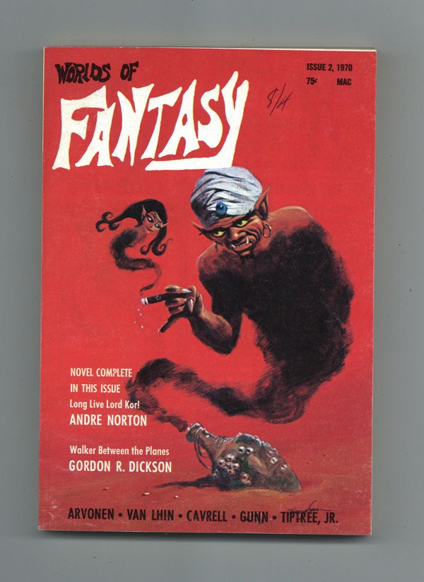 Published Jun 1970 by Galaxy Publishing.$21.00Issue 2, 1970. Cover and illustrations by Jack Gaughan. Fantasy Stories: "Long Live Lord Kor!" by Andre Norton, "Walker Between the Planes" by Gordon R. Dickson, "The Crayfish" by Helen Arvonen, "Oh Say, Can You See?" by Erik Van Lhin, "Unmistakably Henry" by Jean Cavrell, "Call Me Million" by Frederik Pohl, "Teddy Bear" by James E. Gunn, and "Last Night and Every Night" by James Tiptree, Jr. Softcover Pulp Digest, 5 1/4-in. x 7 5/8-in.; black and white; 192 pages. Cover price $0.75.