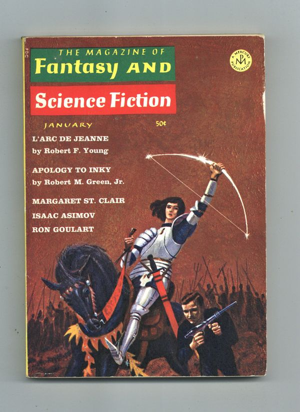 Published Jan 1966 by Mercury Publications.$15.00January 1966. Whole No. 176. Cover by Jack Gaughan. Science fiction stories: "L'Arc De Jeanne" by Robert F. Young, "Apology to Inky" by Robert M. Green, Jr., "Beaulieu" by Margaret St. Clair, "To The Rescue" by Ron Goulart, "The Most Wonderful News" by Len Guttridge, "Survey of the Third Planet" by Keith Roberts, and "Representative from Earth" by Greg Benford. Science article "The Proton-Reckoner" by Isaac Asimov. Softcover, 5-in. x 7-in., 130 newsprint pages, B&W. Cover price $0.50.