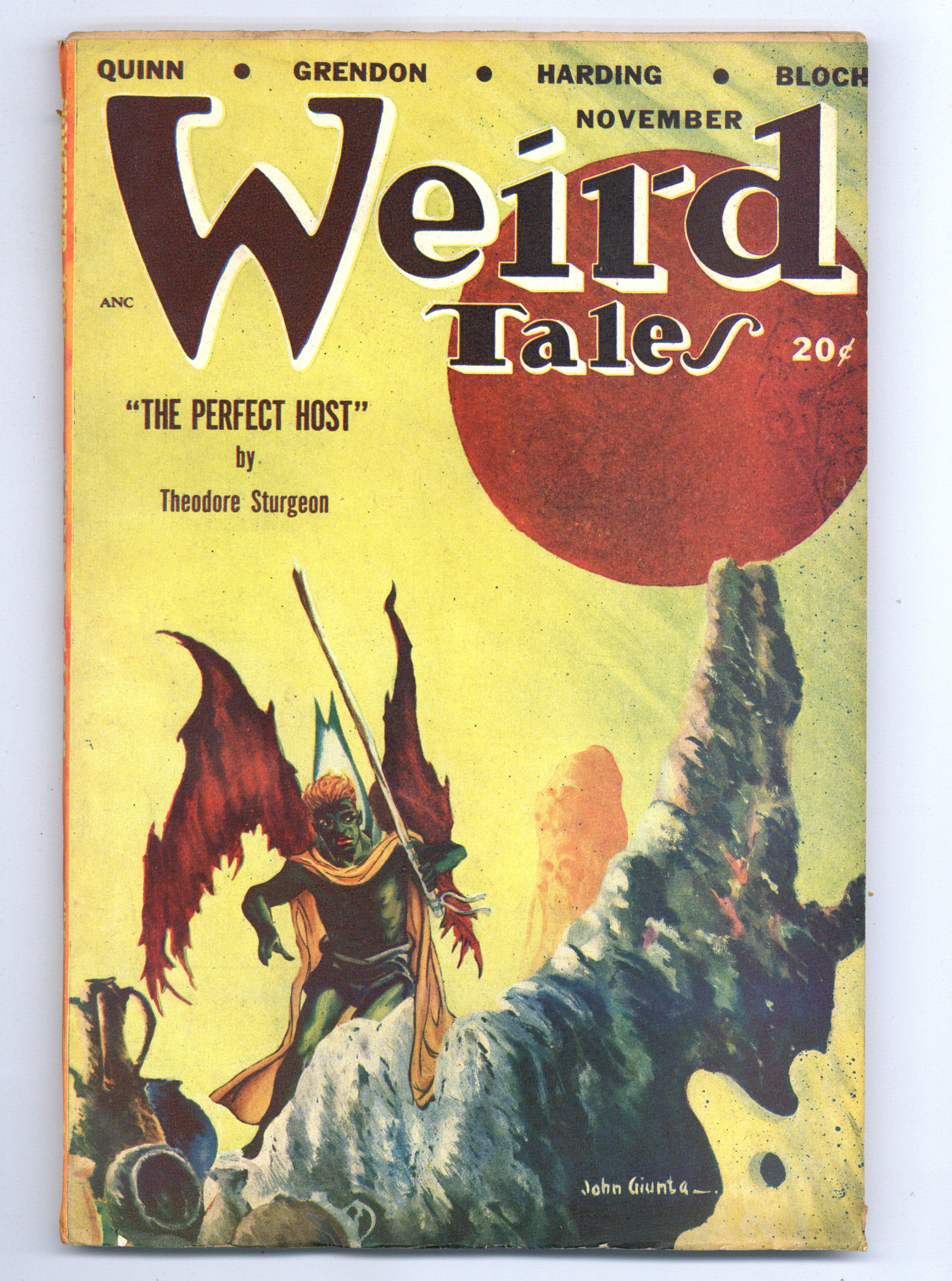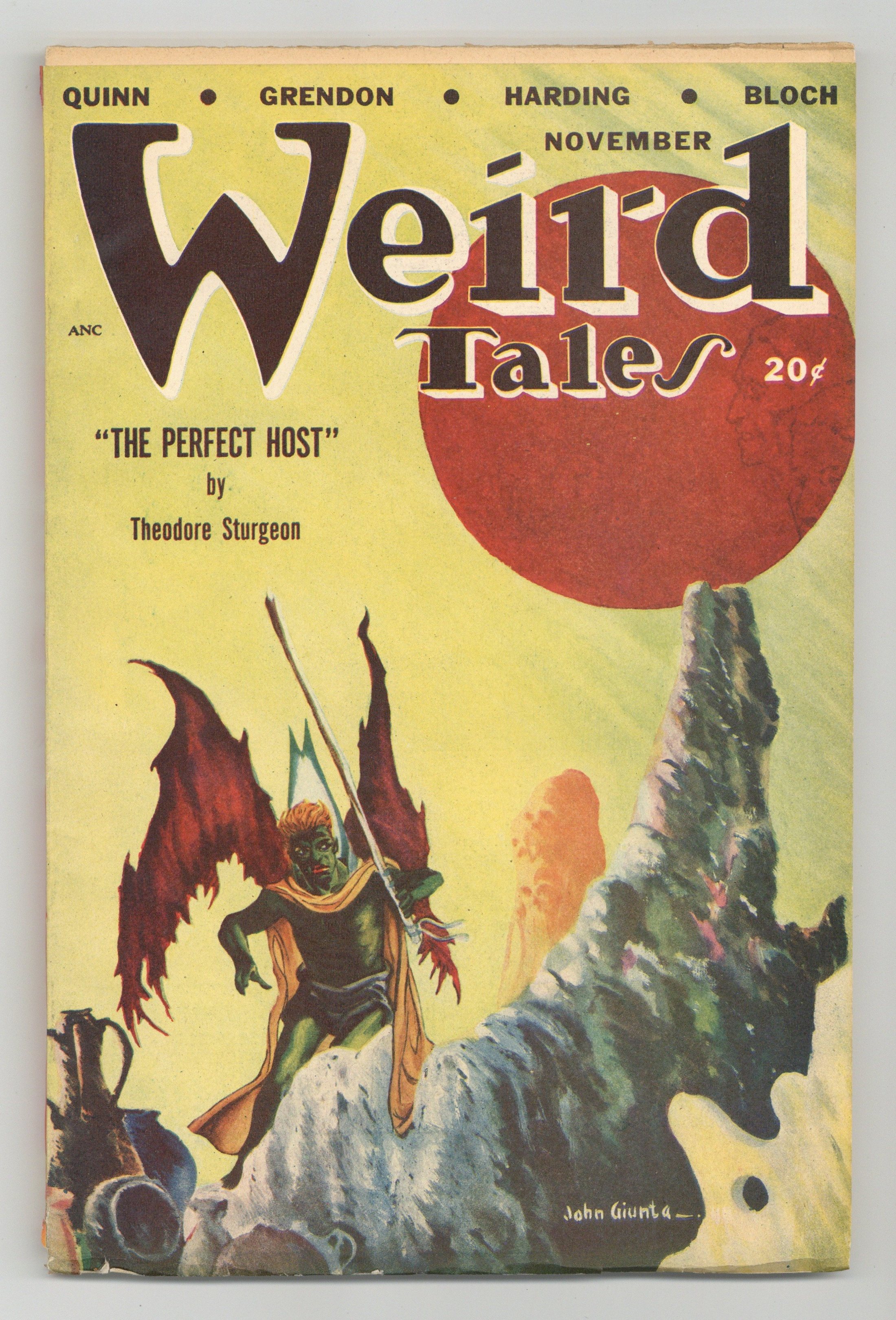 Volume 41, Issue 1 - November, 1948. Cover by John Giunta. Horror and supernatural stories by Theodore Sturgeon "The Perfect Host", Allison V. Harding, Robert Bloch "The Indian Spirit Guide", Stephen Grendon, Carl Jacobi, Malcolm Kenneth Murchie, Seabury Quinn, and Eric Frank Russell. Illustrations by Lee Brown Coye, John N. Anderson, Vincent Napoli, John Giunta, Fred Humiston, and Boris Dolgov. 6 3/4-in. x 10-in.; black and white; 96 newsprint pages. Cover price $0.20.
