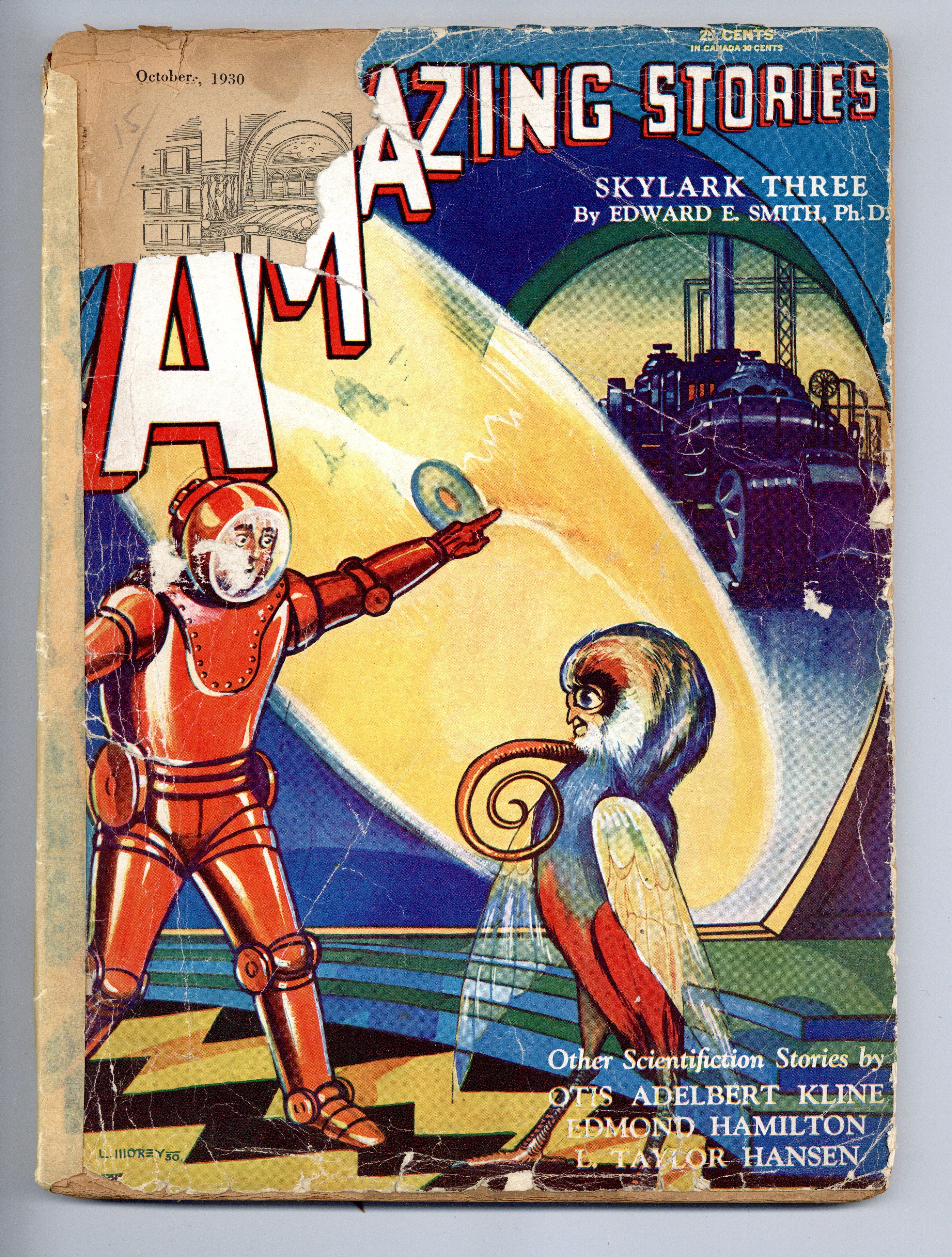 Volume 5, Issue 7 - October, 1930. Amazing Stories is an American science fiction magazine launched in April 1926 by Hugo Gernsback's Experimenter Publishing. It was the first magazine devoted solely to science fiction. Featuring stories by Edward E. Smith, Otis Adelbert Kline, L. Taylor Hansen, and more! 8 1/2-in x 11 1/2-in, 100 pgs, B&W. Cover price $0.25.