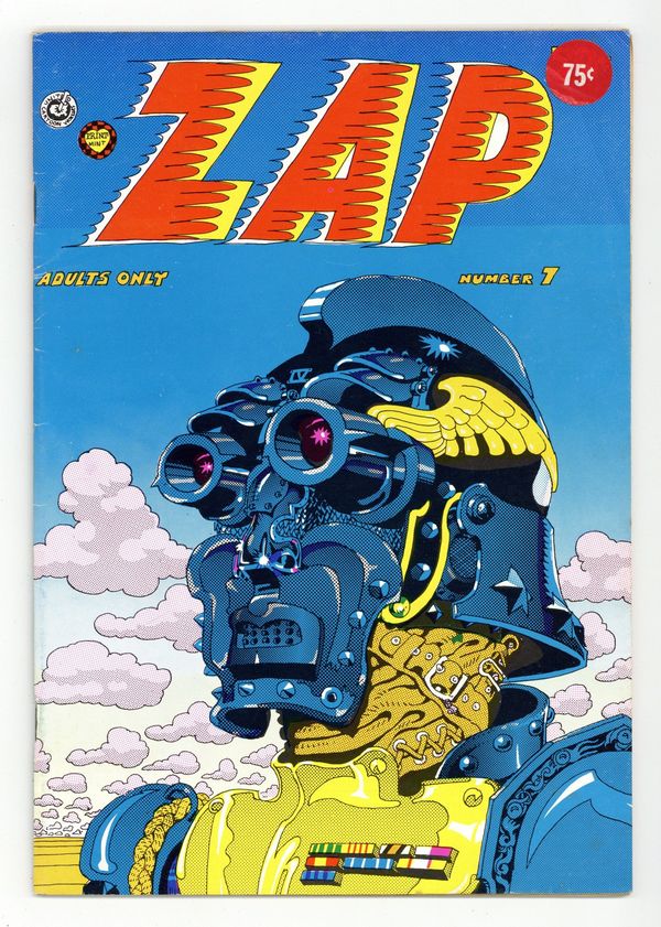 Tags: UndergroundPublished Mar 1974 by Apex Novelties.$16.001st Printing. Spain Rodriguez cover. Art and stories by Robert Williams, Robert Crumb, Victor Moscoso, Spain Rodriguez, S. Clay Wilson, Rick Griffen, and Gilbert Shelton. MATURE READERS. NOTE: Red Sticker 1st Printings: many 1st printings had a red 75¢ sticker placed over original 50¢ cover price in the secondary market (the 50¢ price is still visible through the red sticker). Cover price $0.50.