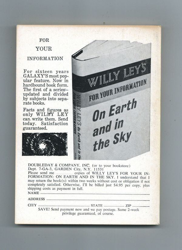 Published Sep 1967 by Quinn Publishing Co..$17.00September 1967. Cover by Morrow. Stories: "The Fortunes of Peace" by C. C. MacApp, "To Serve the Masters" by Perry A Chapdelaine, "Venus Smiles" by J. G. Ballard, "A Bowl Bigger Than Earth" by Philip Jose Farmer, "Invader" by Harl Vincent, "Faust Aleph-Null" by James Blish, and "Bride Ninety-One" by Robert Silverberg. 5.25-in. x 7.5-in.; 162 Pages, B&W. Cover price $0.60.