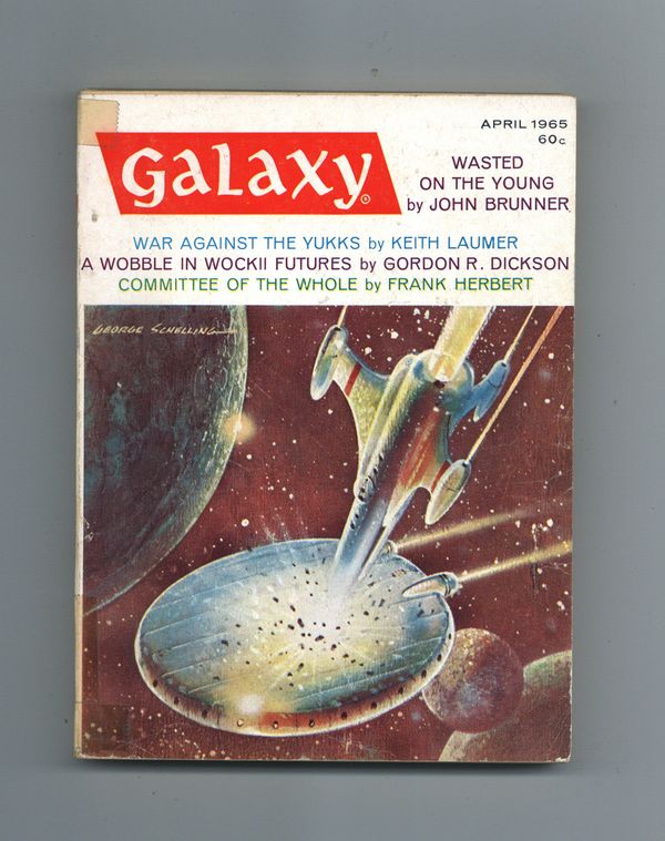 April 1965. Cover by Schelling. Stories: "Committee of the Whole" by Frank Herbert, "Death and Birth of the Angakok" by Hayden Howard, "A Wobble in Wockii Futures" by Gordon R. Dickson, "The Decision Makers" by Joseph Green, "War Against the Yukks" by Keith Laumer, "Wrong-Way Street" by Larry Niven, "Wasted on the Young, "Slow Tuesday Night" by R. A. Lafferty, and "Sculptor" by C. C. McApp. 5.25-in. x 7.5-in.; 194 Pages, B&W. Cover price $0.60.