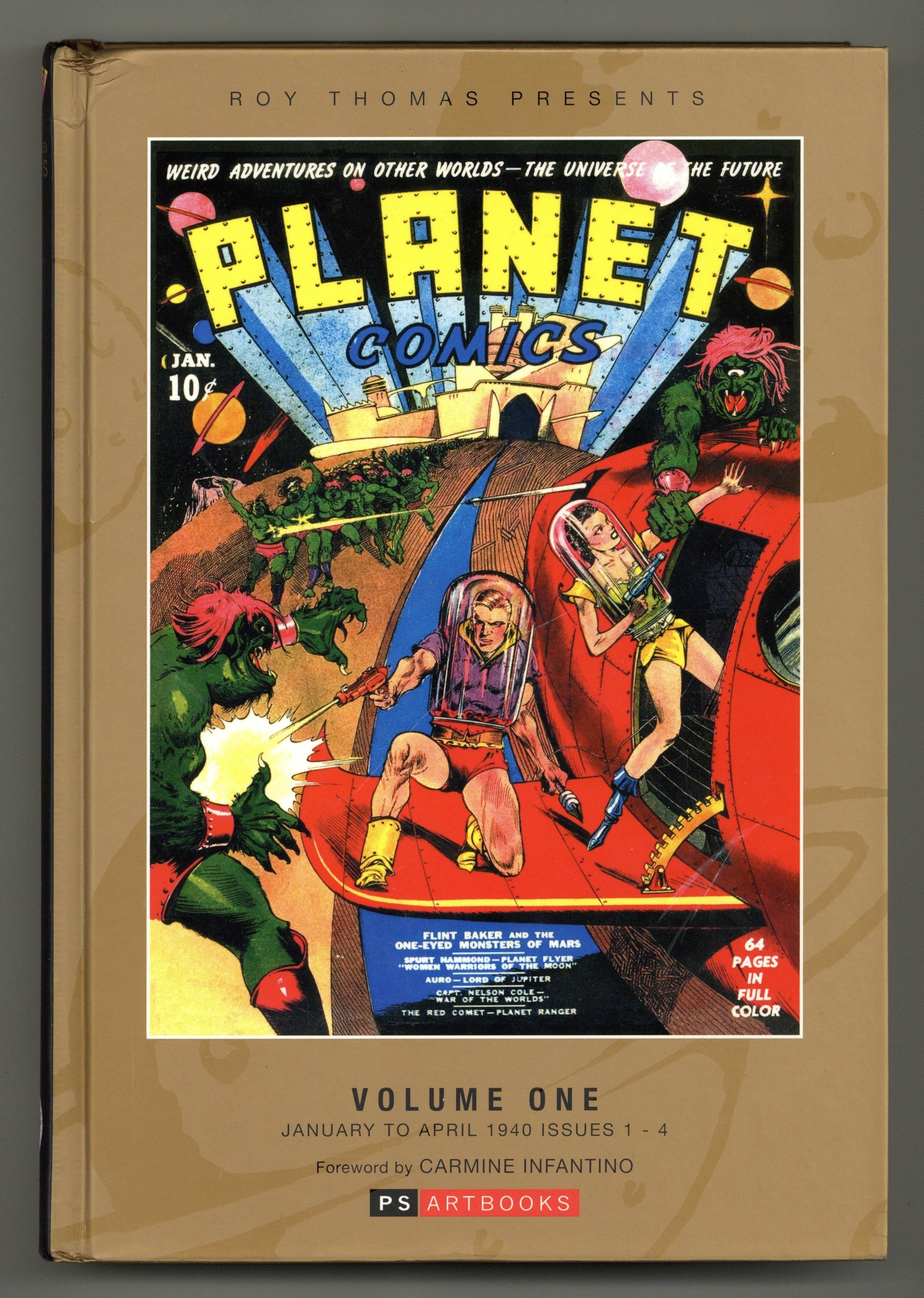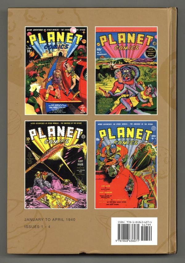 The first volume of the "out of this furshlugginer world" adventures of the awe-filled Planet Comics presents stories that appeared from Fiction House over a thirteen-year period ending in 1953. They're all here - Flint Baker, Reef Ryan, The Space Rangers, Gale Allen, Star Pirate, Mysta of the Moon, Norge Benson, plus many more and a bevy of the most scantily-clad females you're likely to see outside of Silvio Dante's Bada Bing strip joint in The Sopranos.
