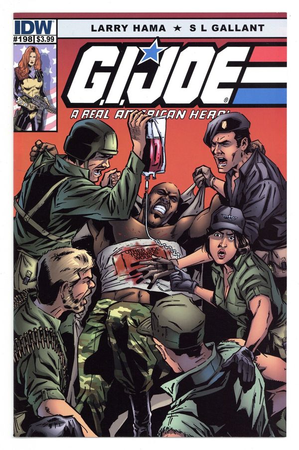 Tags: G.I. JoePublished Jan 2014 by IDW Publishing.$15.00Cover by SL Galant. Written by Larry Hama. Art by SL Galant. The March to RAH #200 Continues! As things heat up in Sierra Gordo, SCARLETT and SNAKE EYES race against the clock to save G.I. JOE's HQ, The Pit, from the sinister grip of COBRA. Cover price $3.99.