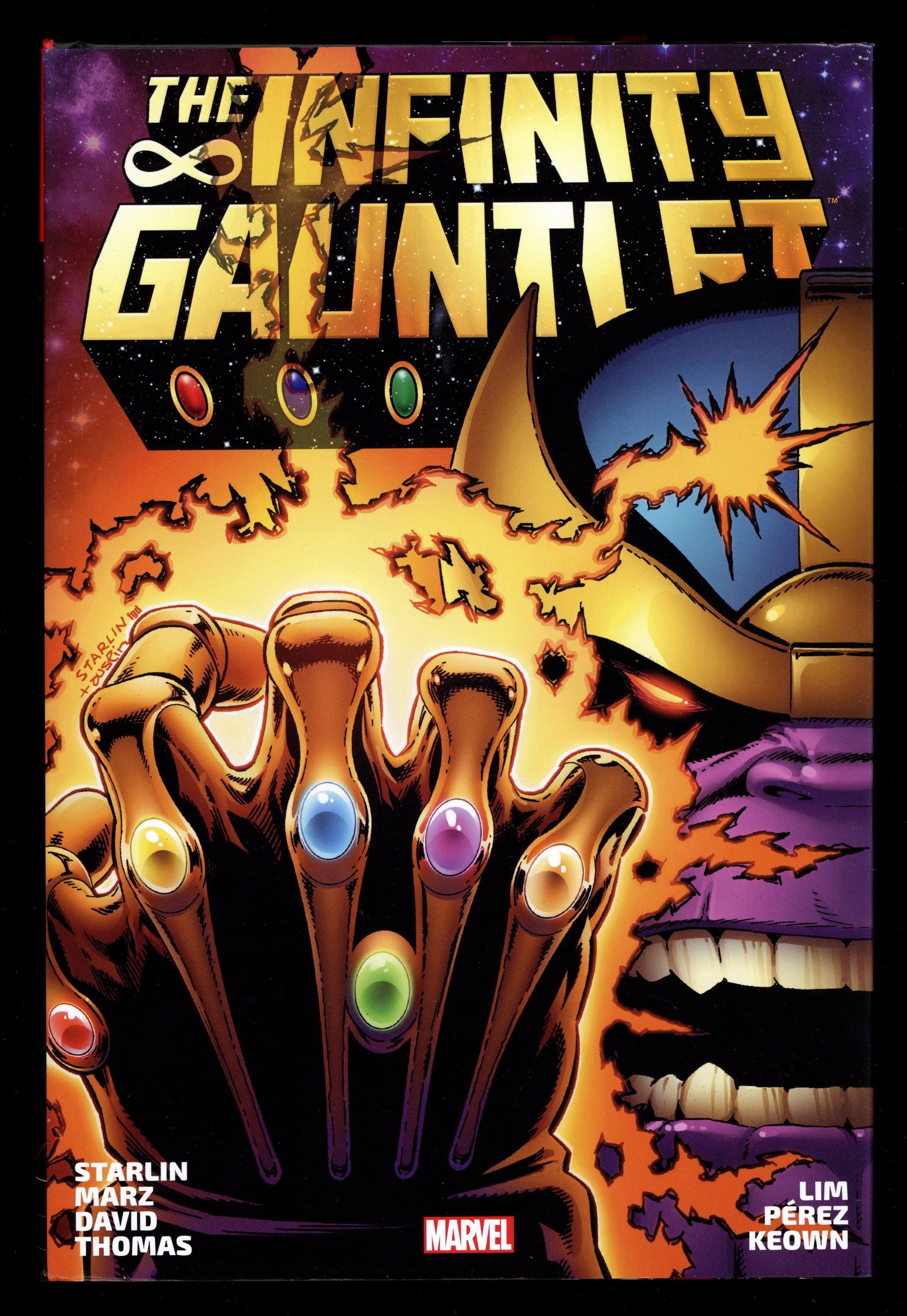 Death has released Thanos from her cold embrace, and he plans to repay her by murdering half the universe! But even as the Mad Titan gathers the six Infinity Gems from across the galaxy, assembling them into the Infinity Gauntlet and gaining truly godlike powers, a host of heroes gather to oppose him - including the Silver Surfer, Adam Warlock, Gamora, Drax the Destroyer, Dr. Strange and the Hulk! Even with Dr. Doom, Galactus and the universe's cosmic powers aiding them, can Marvel's mightiest possibly prevail against Thanos the all-powerful? At long last, the fan-favorite cosmic event is collected in its entirety!