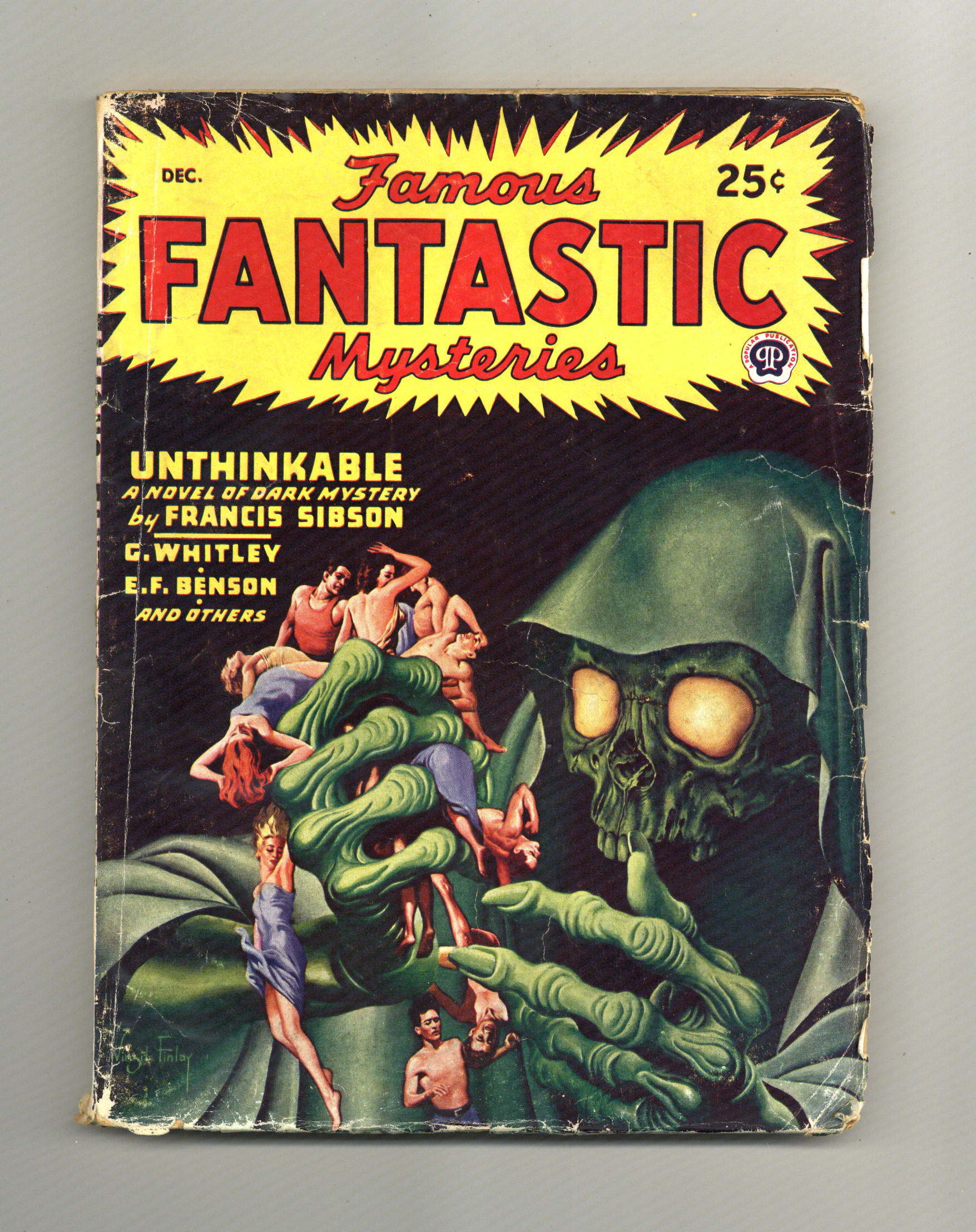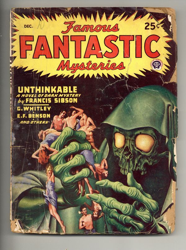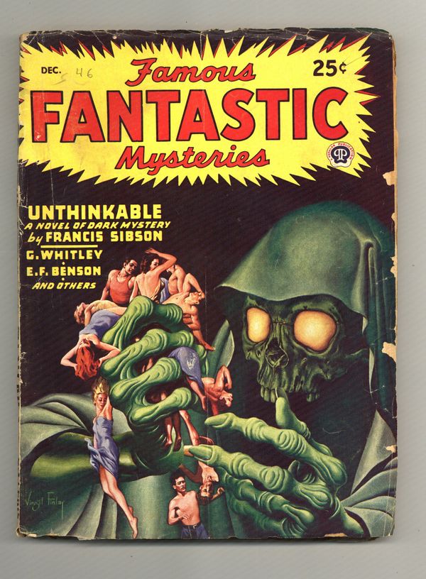 Published Dec 1946 by Frank A. Munsey.$105.00December 1946. Cover by Virgil Finlay. "Unthinkable" by Francis Sibson, "At the Farmhouse" by E. F. Benson, "And Not in Peace" by George Whitley. Illustrations by Lawrence and Finlay. 7-in. x 9 1/2-in.; 130 Pages, B&W. Published by Popular Publications Cover price $0.25.