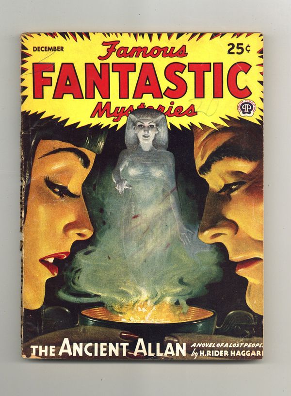 December 1945. Cover and illustrations by Lawrence. "The Ancient Allan" by H. Rider Haggard, and "The Hashish Man" by Lord Dunsany. Illustrations by Lawrence and Ronald Clyne. Softcover Pulp, 7-in. x 9 1/2-in.; 130 Pages, B&W. Published by Popular Publications Cover price $0.25.