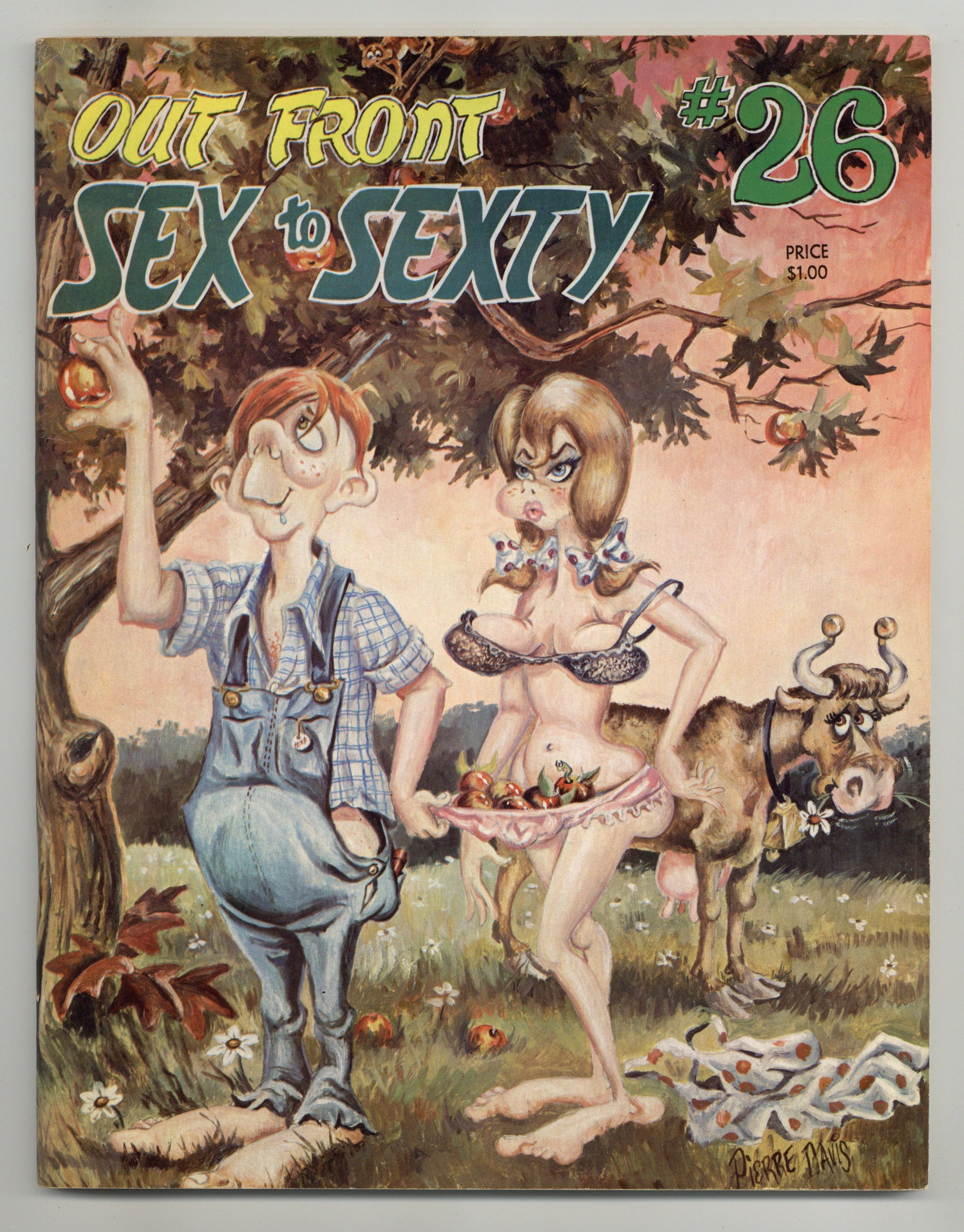 "Sex to Sexty: Out Front!" Men's Magazine with adult jokes and cartoons. 64 pages, text, with B&W illustrations Cover price $1.00.