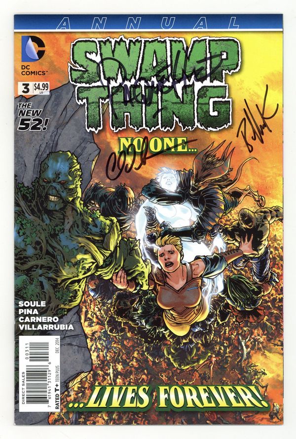 $15.00- Signed by Yanick Paquette, Dave Bullock, and Charles Soule. No autograph certification is included.