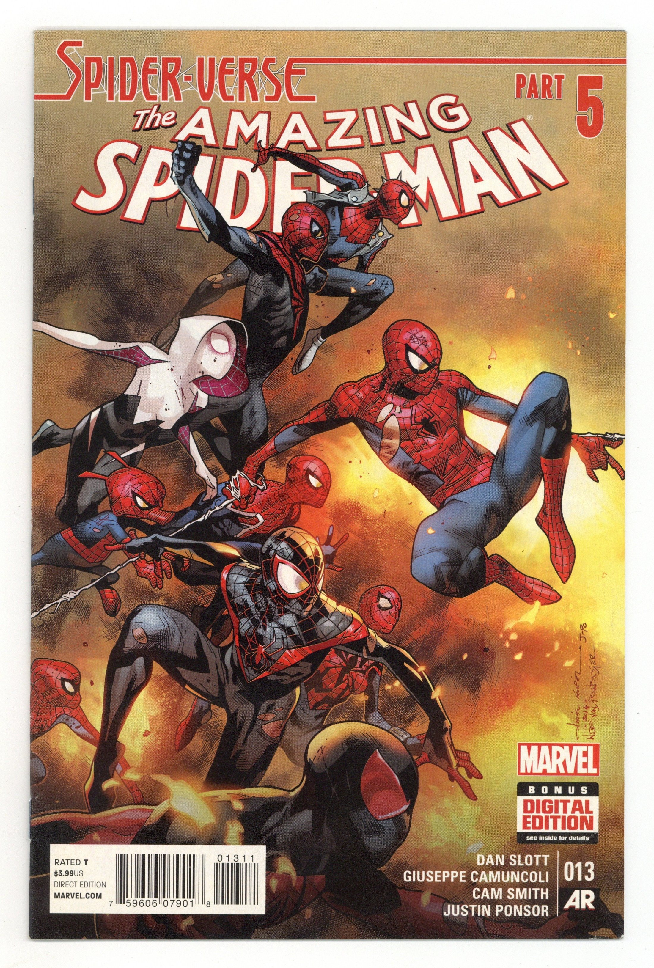 Tags: Marvel Legacy Numbering: Amazing Spider-Man (part 746), Spider-Verse (Marvel) (part 5), Spider-Man$18.00Spider-Verse: Part 5 of 6 - Written by Dan Slott. Art by Giuseppe Camuncoli. Cover by Olivier Coipel. SPIDER-VERSE PART 5 - THE FINAL BATTLE BEGINS HERE! EVERY SPIDER-MAN EVER MUST FIGHT AND NO SPIDER IS SAFE! 28 pages, full color. Rated T Cover price $3.99.