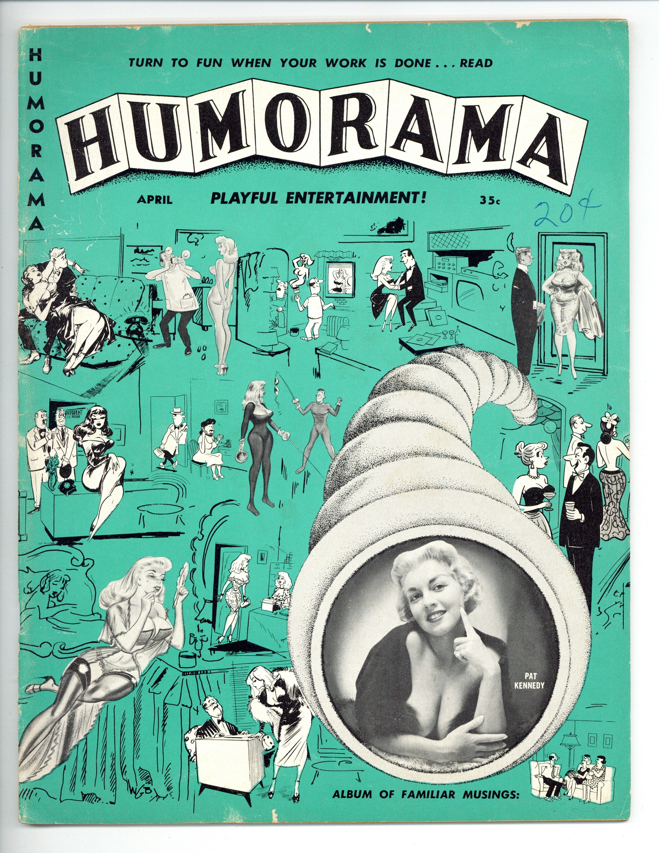 Volume 1, Issue 1. April 1957 - The classic Men's Humor magazine that featured such legendary good girl artists as Dan DeCarlo, Bill Wenzel, and Bill Ward. This issue also features pin-ups of Bettie Page, Pam Graham and Madeline Castle! 52 pages, Text (with B&W Illustrations and Photographs). Mature Readers. Cover price $0.35.