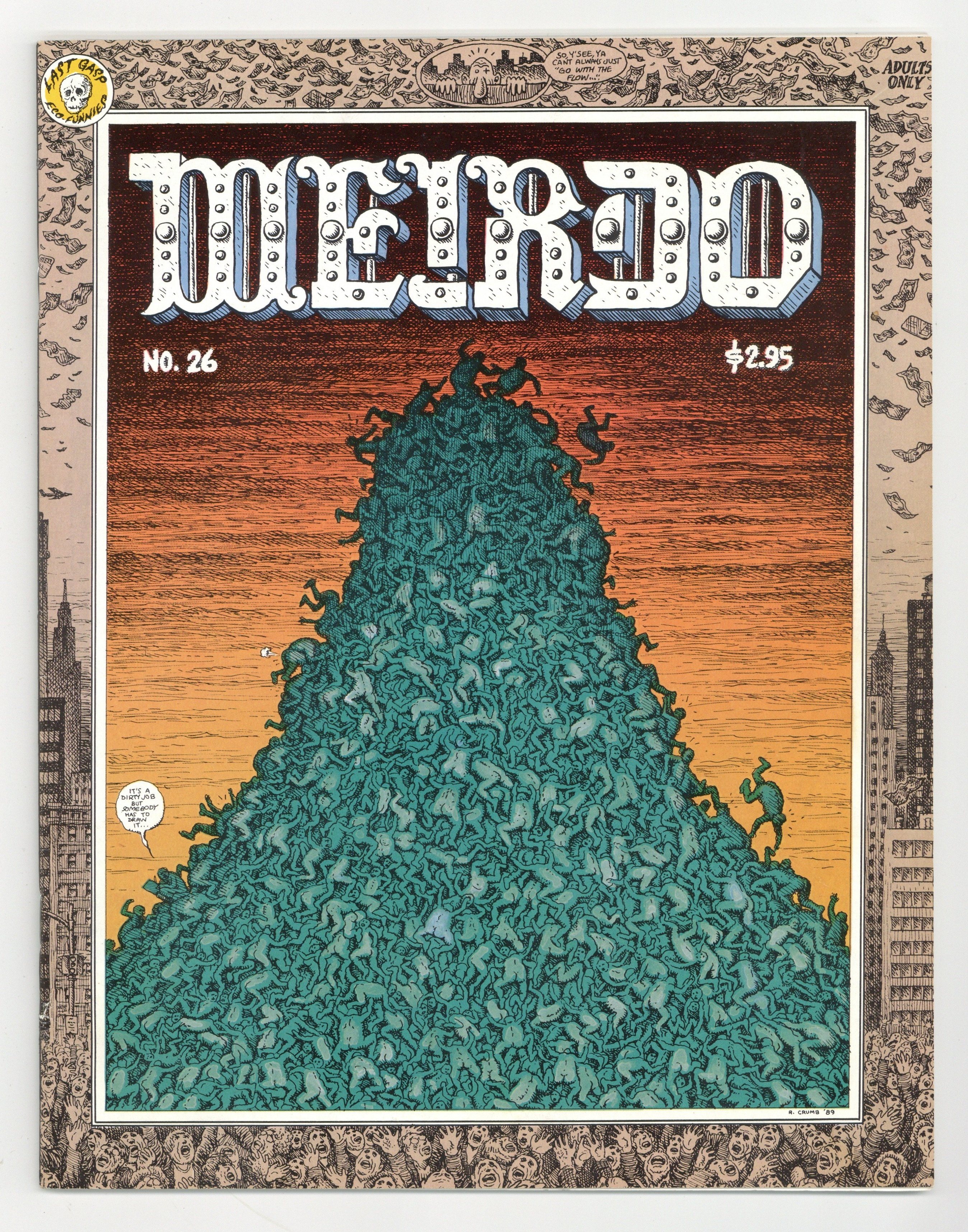 Cover by Robert Crumb. Harvey Sez column; Harvey Pekar praises the new comics journalism, including the likes of Joe Sacco, Bill Tulp and Tom Keough. "People... Ya Gotta Love 'Em!", script and art by Robert Crumb; The struggle through the great mass of humanity. "A Bird in the Beard," script and art by Penny Moran Van Horn; DJ Don has a crush on Barb. "Quaker School Q-Ties in Plan Against The Boys," script and art by Phoebe Gloeckner; A group of schoolgirls discover one of their number has reached puberty. Untitled story, script and art by Spain Rodriguez; Big Bitch acquires a formula enabling the total recall of dreams. "A Scam a Day: Growing Up as Arnie's Girl," script and art by Aline Kominsky-Crumb; Arnie's brutal parenting. "Where Am I?," script and art by Roy Tompkins; A is man plagued by a violent hallucination. 44 pgs., B&W. 8-in. x 11-in. $2.95. Cover price $2.95.