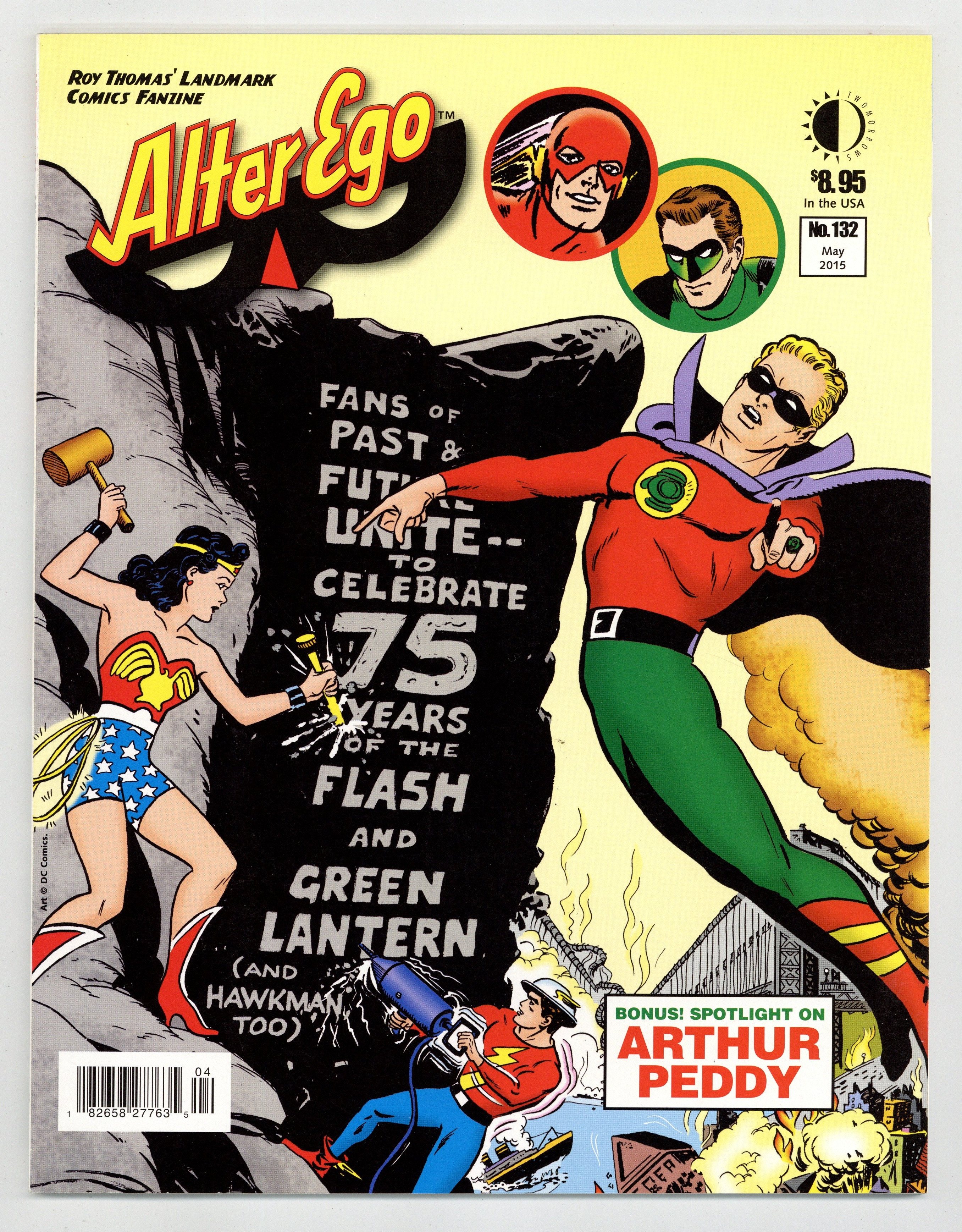 A Special Crossover Extravaganza! Alter Ego celebrates 75 years of The Flash and Green Lantern (with Hawkman thrown in for good measure!) The era from 1940 to 1970, with Back Issue #80 picking it up from there! Vintage art by Infantino, Kane, Kubert, Elias, Lampert, Hibbard, Nodell, Hasen, Toth, Reinman, Sekowsky, and others! Plus: Golden Age JSA and Dr. Mid-Nite artist Arthur Peddy as known by stepson Dr. Michael Posner, in an interview by Richard Arndt! Also: Mr. Monster's Comic Crypt: The Mystery of the Missing Comic (Part Two) - more by Michael T. Gilbert on Bob Powell's AWOL Man in Black issue; Comic Fandom Archive: Al Dellinges - "It's Been a Great Trip!" - Bill Schelly introduces the ultimate Kubert fan, recalling a lifetime of fan-publishing; Fawcett Collectors of America - P.C. Hamerlinck presents Elliot Maggin, John G. Pierce and Otto Binder. Cover reproduced from original art for All Star Comics (1940-1978) #49 by Arthur Peddy & Bernard Sachs -- or is it Irwin Hasen? We print...you decide! Edited by Roy Thomas. 80 pages, full color. Cover price $8.95.