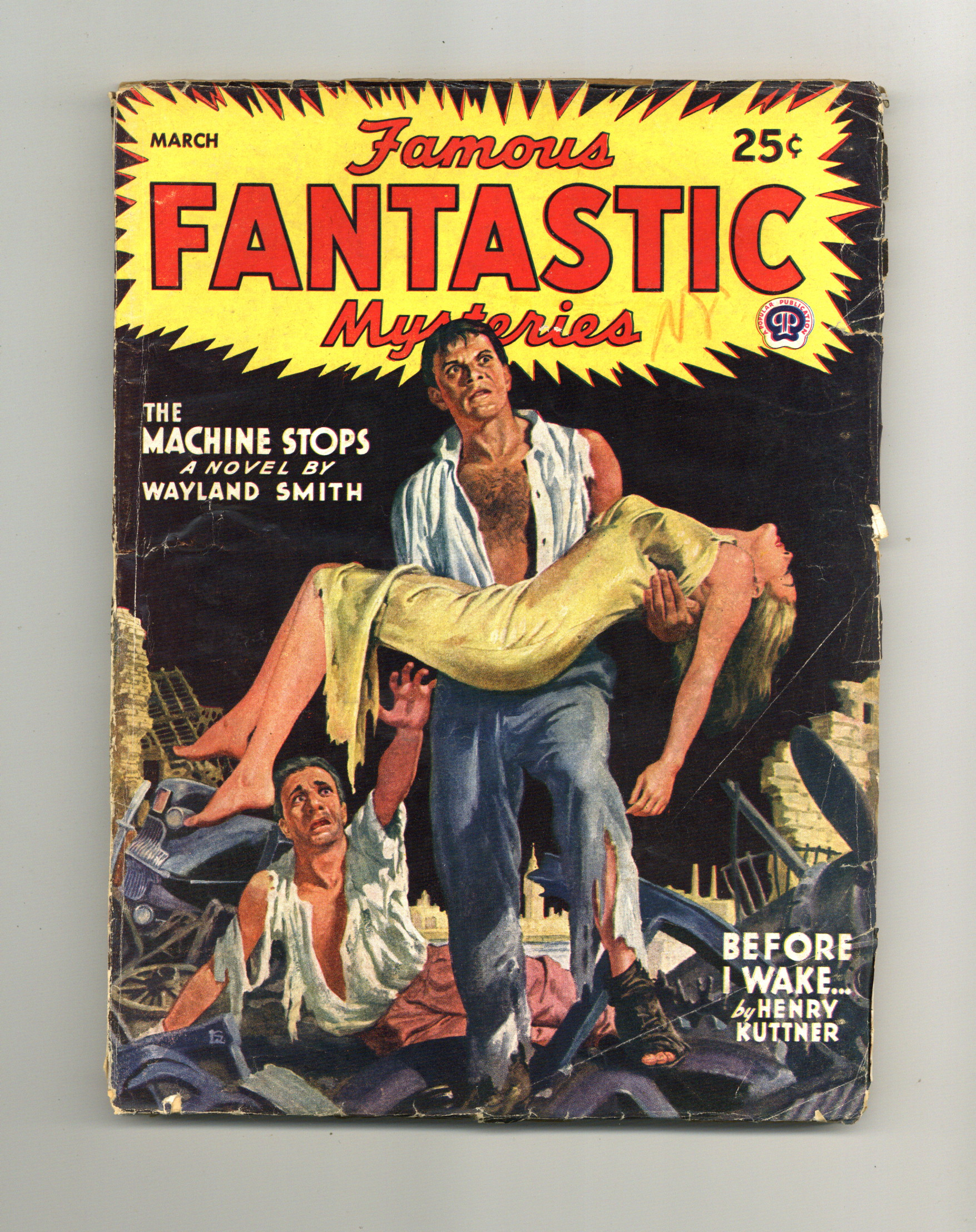 Volume 6 Number 4, March, 1945. Art and Cover by Lawrence. "The Machine Stops" by Wayland Smith, and "Before I Wake" by Henry Kuttner. Softcover Pulp, 7-in. x 9 1/2-in.; 130 Pages, B&W. Published by Popular Publications Cover price $0.25.