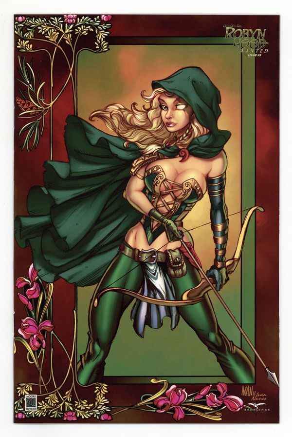 Published Jul 2013 by Zenescope Entertainment.$20.00Moore Editions Exclusive Cover By Manuel Carrasco and Ivan Nunes. Limited to 250 copies. (W) Patrick Shand (A) Larry Watts Dragged back into the Realm of Myst against her will, Robyn finds herself fighting the mysterious assassin, Avella. As Gisbourne watches from afar, putting all of the pieces into place for his endgame, the citizens of Nottingham are left at the mercy of the monstrous Dark Horde. Robyn must return to the people she once liberated to lead their rebellion... but will she survive Avella's wrath long enough to do so? Cover price $2.99.