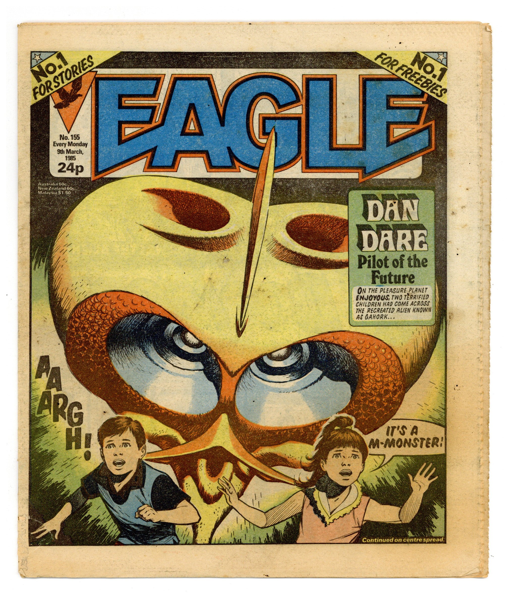 Published Mar 1985 by IPC Magazines.$7.80Dan Dare, plus other features. Published in the United Kingdom, 8-1/2-in. x 11-1/2-in, 32-pages including cover, all newsprint stock. Mix of color and black/white interior.