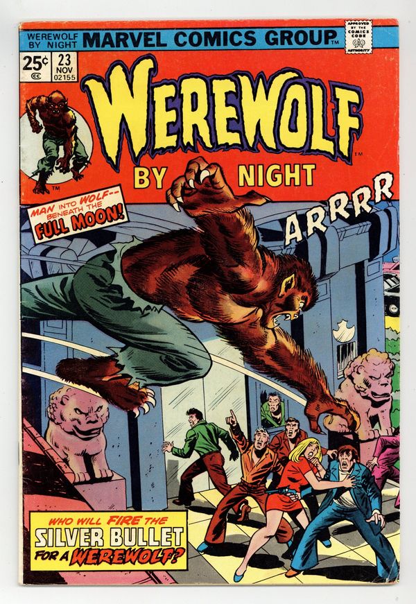 Mark Jeweler Advertisement Insert Variant. Marvel Value Stamp. Cover pencils by Ron Wilson, ink touchups by John Romita. The Murderer Is a Maniac, script by Doug Moench, pencils by Don Perlin, inks by Vince Colletta; Buck Cowan bails Jack Russell, who was charged with the murder of Simon Kolb, out of jail. 36 pgs. $0.25. Cover price $0.25.
