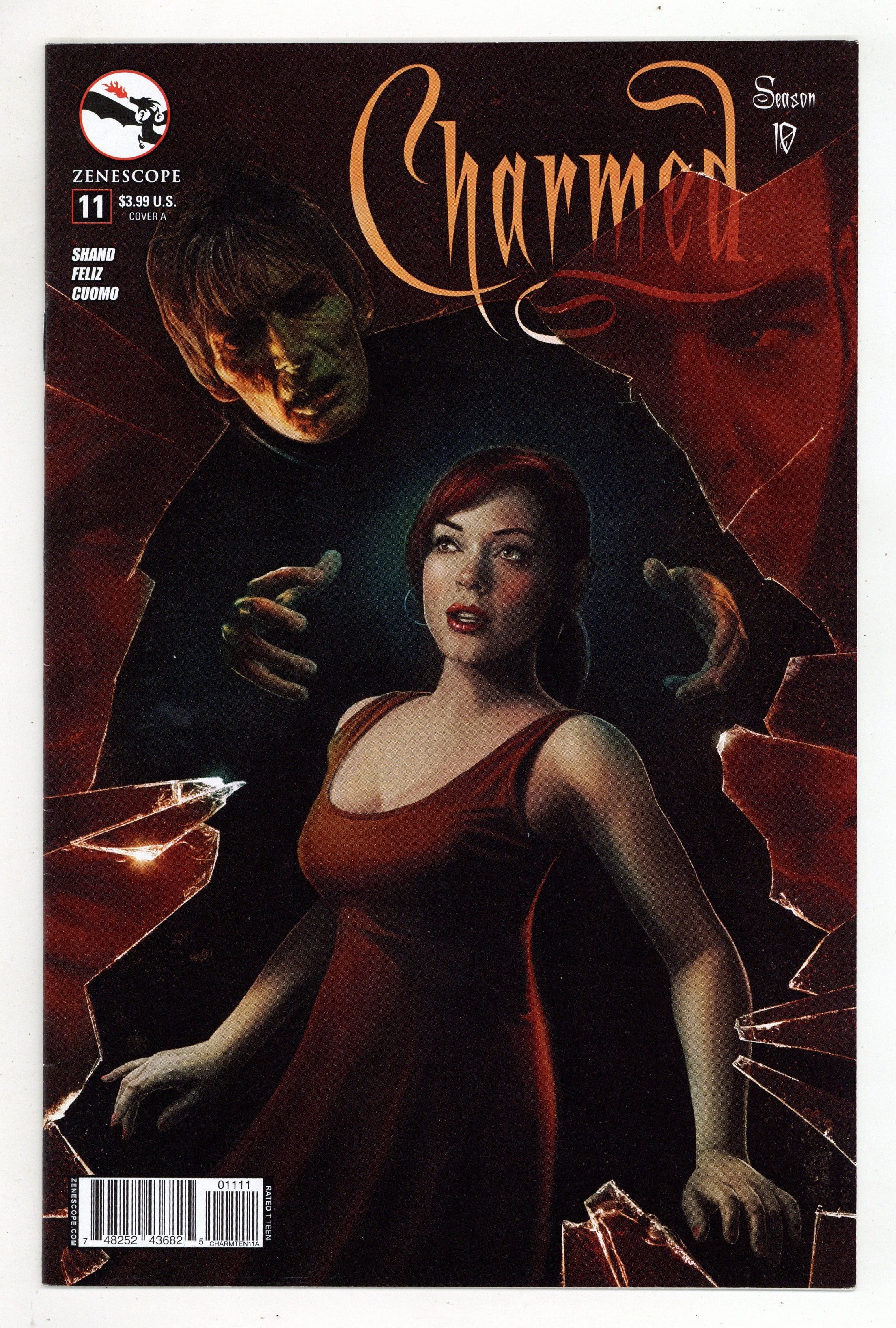 Published Sep 2015 by Zenescope Entertainment.$9.00Written by Patrick Shand. Art by Elisa Feliz. Cover by David Seidman. FEAR ALWAYS COMES BACK After the fallout of the last issue has settled, life goes on for the Charmed Ones. That is, until an old enemy sets his sights on Paige and her new charges… 28 pages, full color. Rated T Cover price $3.99.