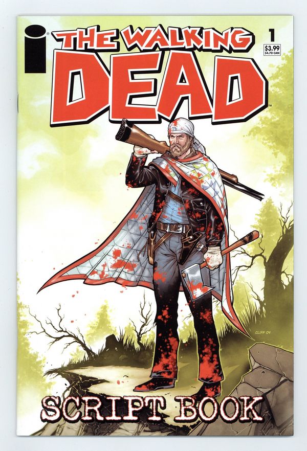 $18.50written by ROBERT KIRKMAN cover by CLIFF RATHBURN For your reading pleasure we present the complete, unedited, scripts for the sold-out first six issues of THE WALKING DEAD. If you think the issues were wordy - just wait until you see what they look like without pictures! See what changed, see what stayed the same - see completely different lines of dialogue that were later improved. RETAILER WARNING: MAY NOT BE SUITABLE FOR ALL AGES Cover price $3.99.