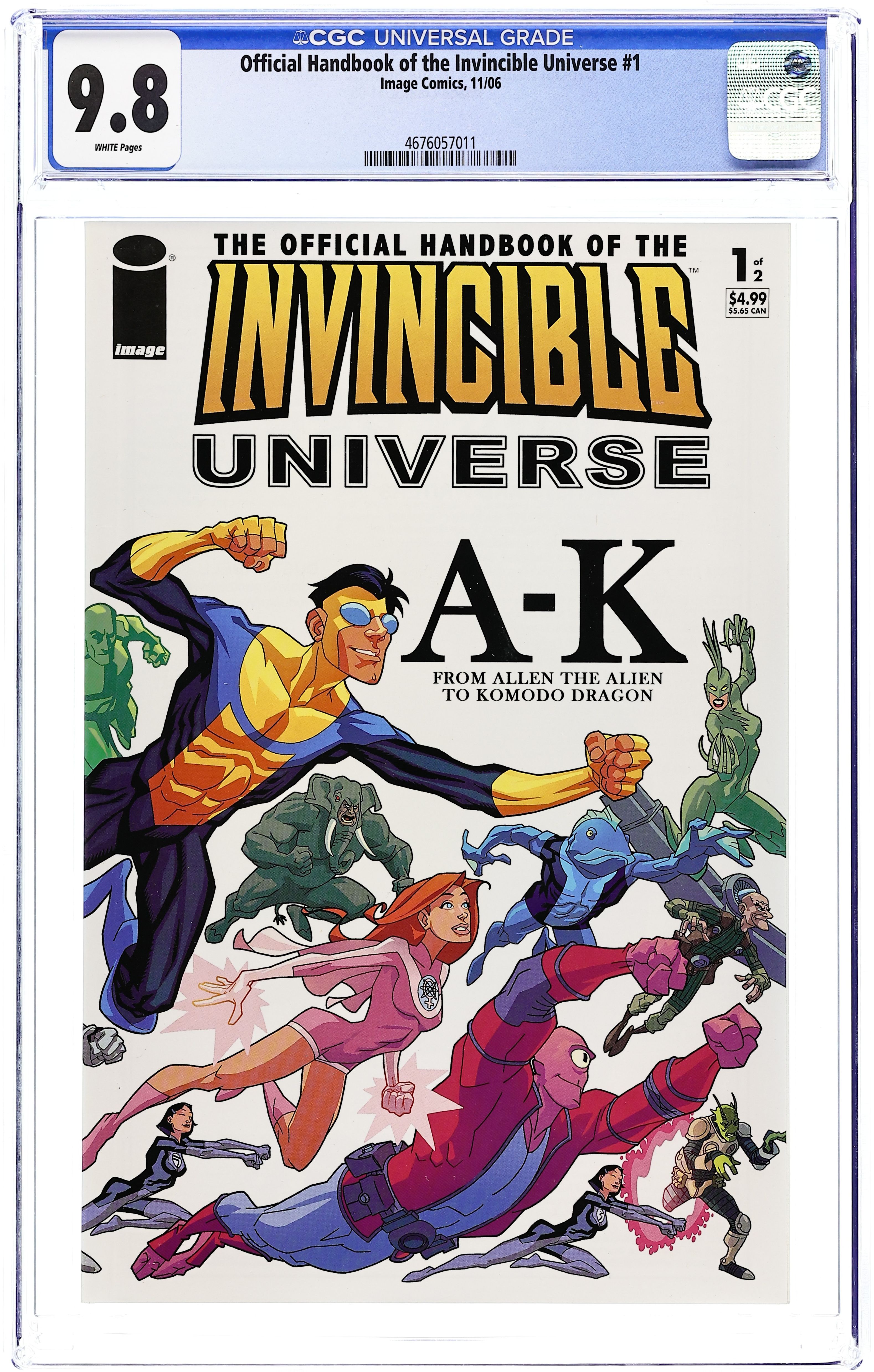 Anything you've ever wanted to know about the characters in INVINCIBLE, but were afraid to ask. Power levels, hometowns, relatives, origins, shoe sizes... it's all here. Written in the tradition of that other famous handbook and featuring drawings from some of the top talents in comics and animation. A MUST HAVE FOR ANY INVINCIBLE FAN! Cover price $4.99.