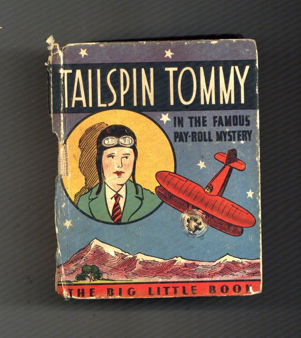 Tailspin Tommy in the Famous Pay-Roll Mystery (1933), is a Big Little Book published by Whitman Publishing. Story and art by Hal Forrest (pseudonym for Gaylord DuBois). First printing, identified by its paper spine. Second printings do exist. Only two Big Little Books are known to have a colored title page and this is one of them. 320 pages, text story on left page with B&W illustrations on right page, square-bound hardcover, no cover price, 3.5-in. x 4.5-in.