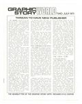 July 1971. Graphic Story World is a newsletter edited by Richard Kyle covering the entire spectrum of graphic arts: Underground Comix, Comic Books, Animated Films, Books, & more. This issue: in his feature article "Between the Panels", John Benson discusses the importance of dialogue balloons in graphic story telling, and lots more. 8 1/2" x 11"; black and white; 12 pages. Cover price $0.40.