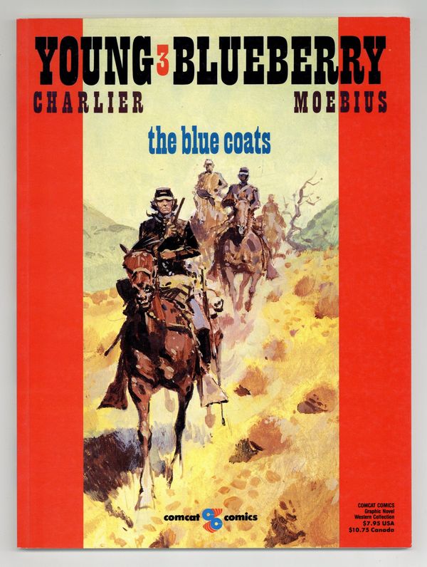 Volume 3 - 1st printing. "The Blue Coats!" Stories by Jean-Michel Charlier, plus an introduction by Randy and Jean-Marc Lofficier. Art and cover by Jean Giraud, credited as Gir but better known as Moebius. Translation by Randy and Jean-Marc Lofficier. The early life of Western hero Lt. Blueberry, featuring art by legendary Heavy Metal artist Moebius. Blueberry finds himself in the thick of the American Civil War. The Blue Coats; Double Cross; Thunder on the Sierra; plus an early Western story from a teenage Moebius, Blanco, King of the Prairie. Softcover, 8-in. x 11-in., 56 pages, full color. Cover price $7.95. Cover price $7.95.