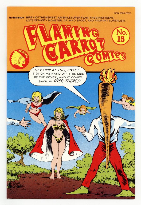 No Cover Price Edition. Cover art by Bob Burden. Monster Fighter!, script and art by Bob Burden; Doctor Why and the Chair terrorize Palookaville with monsters (the Japanese kind); Windy and Scooter become the Bikini Teens. Chronicling the hilarious adventures of Bob Burden's post-Dada, neo-surrealist super-hero. 36 pages, full color. Cover price $2.00.