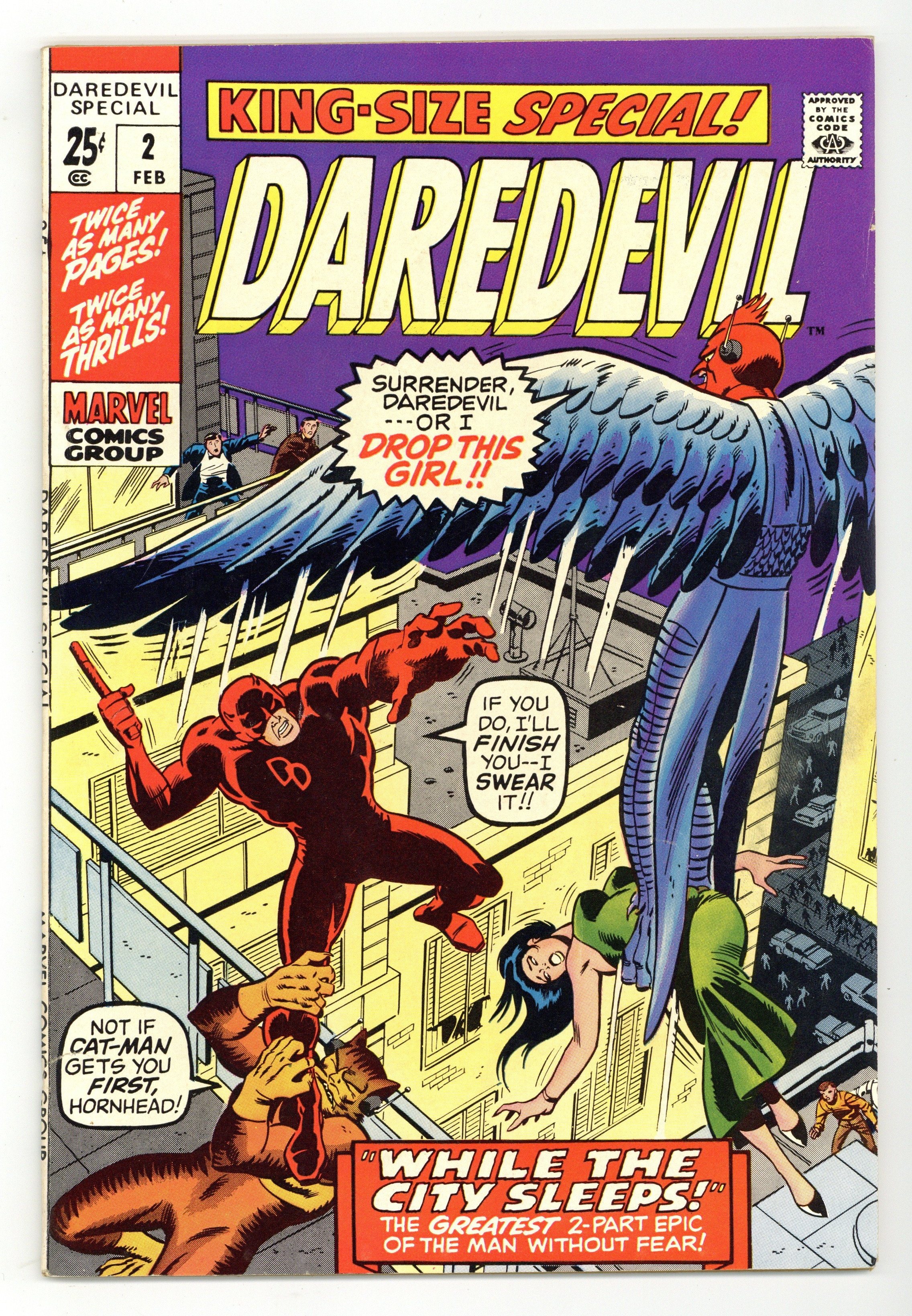 Bob Powell/Wally Wood reprints: "While the City Sleeps" (from Daredevil 10) and "A Time to Unmask" (from Daredevil 11). New Sal Buscema cover. Cover price $0.25.