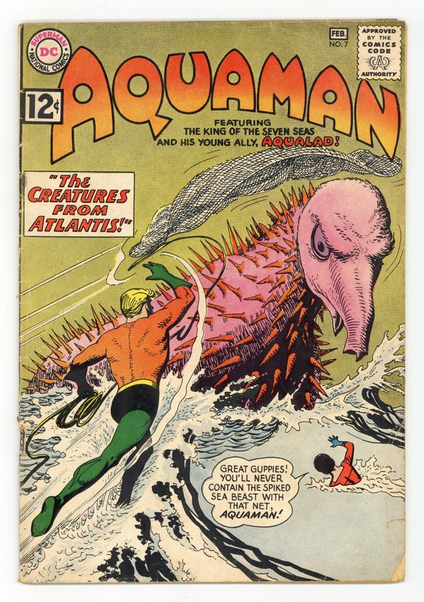 Cover art by Nick Cardy. The Sea Beasts from Atlantis, art by Nick Cardy; Aquaman and Aqualad battle sea creatures; Captain Clay guest-stars. Our Underwater Friends fact page by Henry Boltinoff. Shorty humor page by Henry Boltinoff. Superstitions of the Sea article. 36 pgs. $0.12. Cover price $0.12.