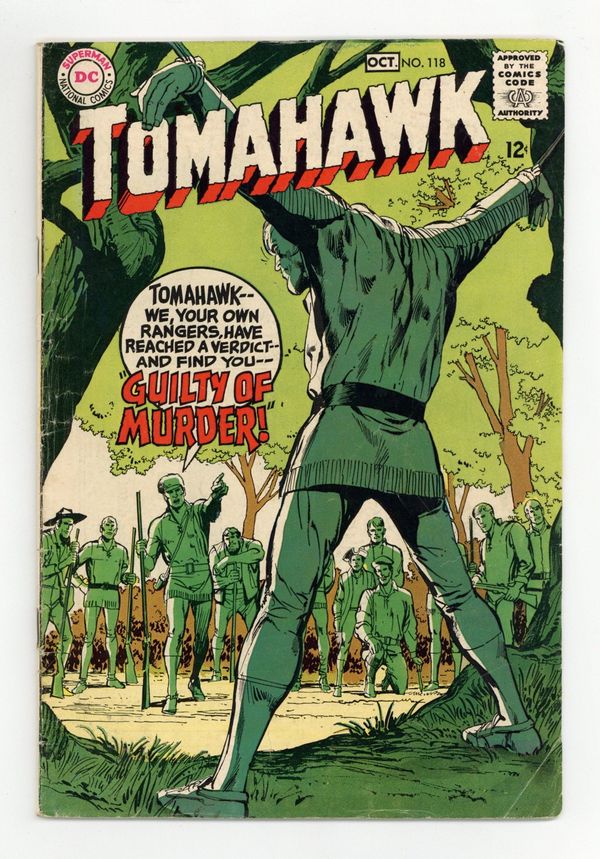 Cover art by Neal Adams. Tomahawk: Guilty of Murder, script by George Kashdan, pencils by Jerry Grandenetti, inks by Joe Orlando; Rangers charge Tomahawk with murder. The Ranger Who Wouldn't Fight starring Tomahawk, script by France Herron, art by Fred Ray. 36 Pages, Full Color. Cover price $0.12.