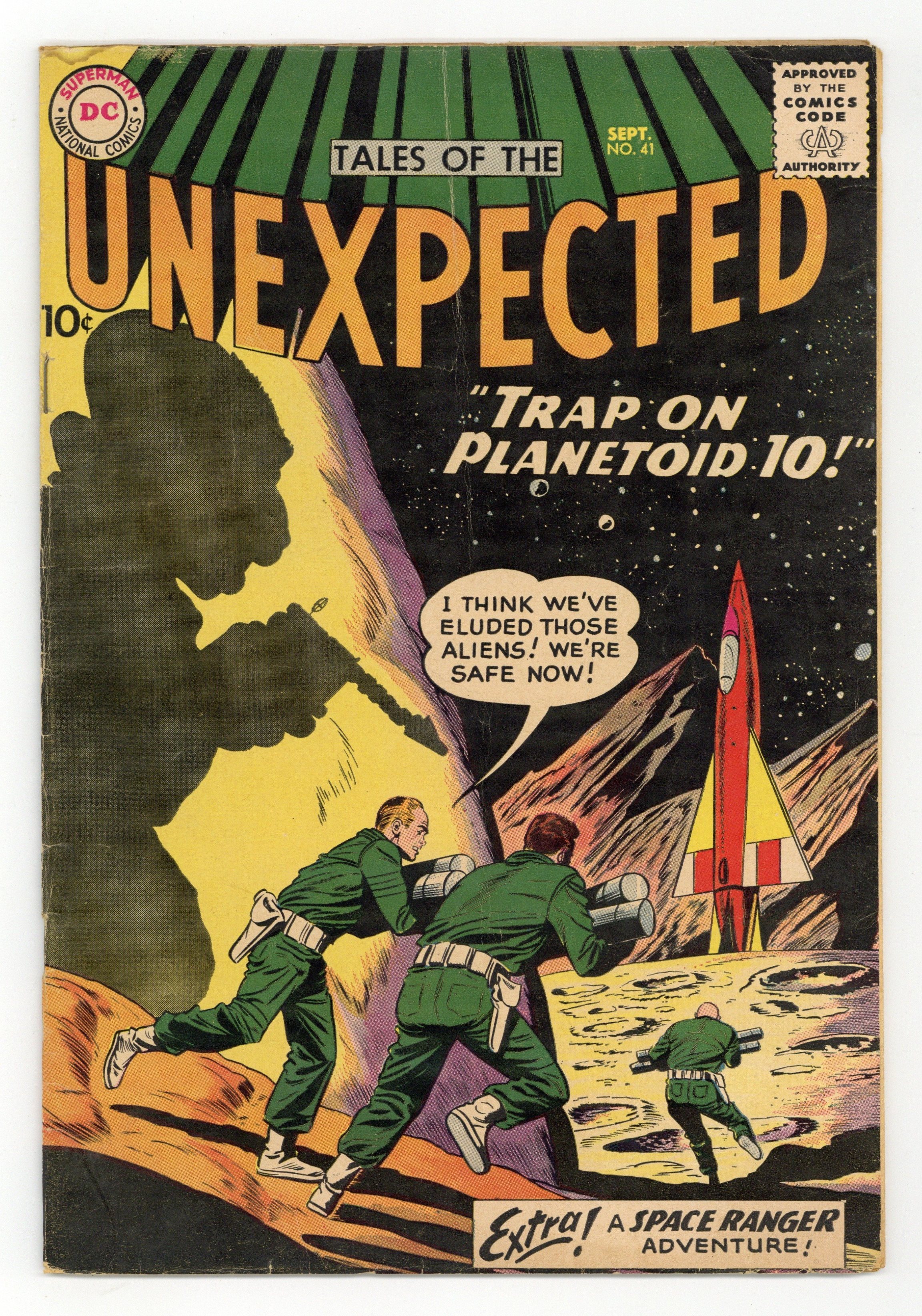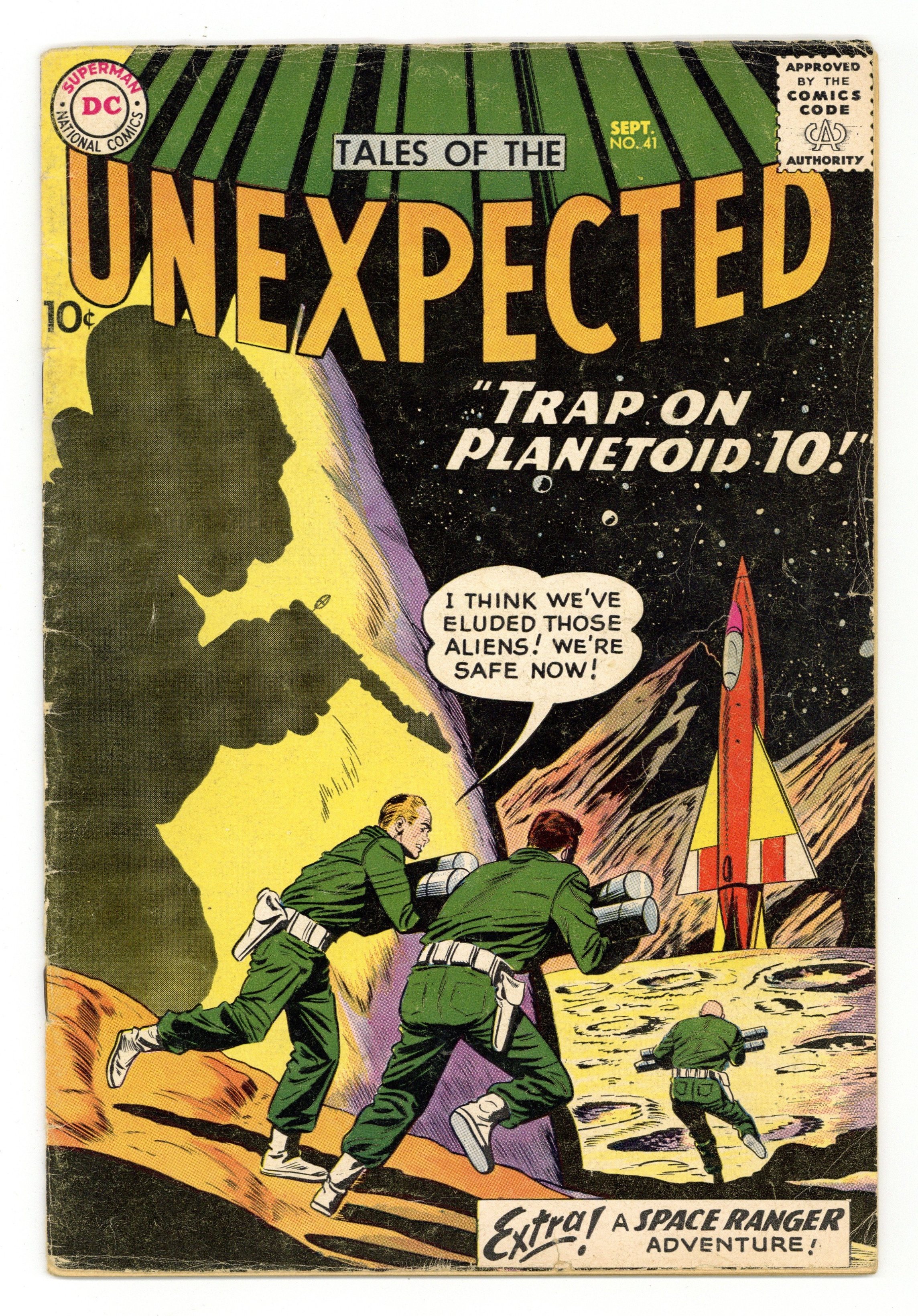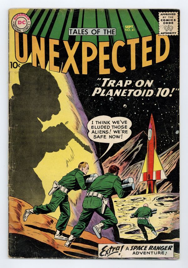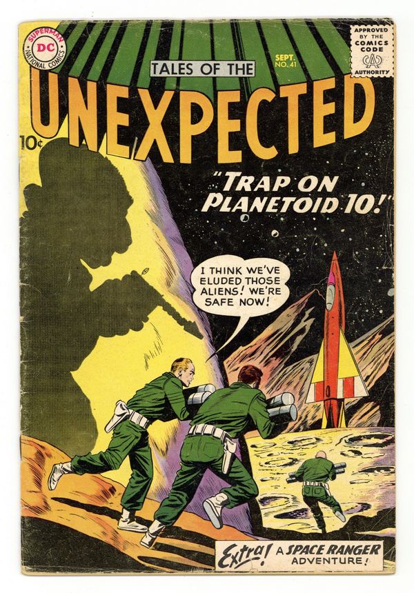 Cover art by Sheldon Moldoff. The Destroyers From The Stars starring Space Ranger, art by Jim Mooney. Water: A Good Friend or Deadly Enemy -- Depending on You! public service announcement, script by Jack Schiff, art by Bernard Baily. Doctor Rocket humor page by Henry Boltinof. The Martian Who Ran For Mayor, art by Nick Cardy. Spiritual Doubles fact half-page by Mort Drucker. How to Use a Space Gun text story. Trap on Planetoid 10, art by George Roussos; men face an alien menace on a mysterious planet. 36 Pages, Full Color. Cover price $0.10.