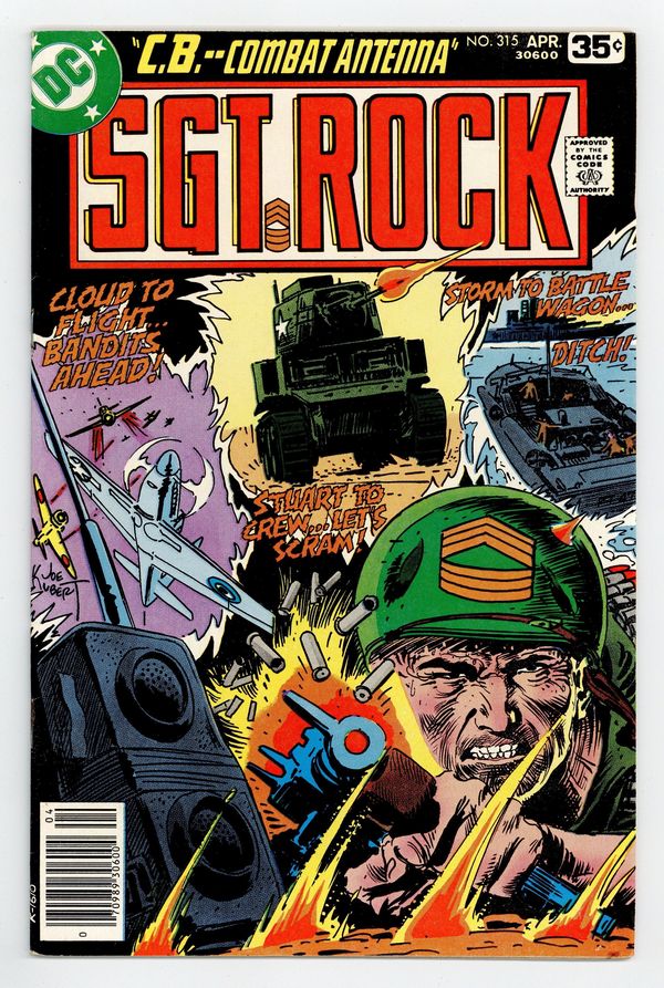 DC Comics Questionnaire Insert Variant. This variant of Sgt. Rock (1977) #315 contains a 4-page, 6.75-in. x 8.5-in., bound in DC customer survey form. Otherwise, the comic is identical to ordinary copies. No info is available as to how many copies of this issue or other May cover-dated issues contained the survey. However, survey copies almost never turn up so distribution of this variant type must have been very limited. Sgt Rock cut off from Easy Company and on his own except for a CB...and the almost precognitive voice on the other side warning him of danger! Cover price $0.35.