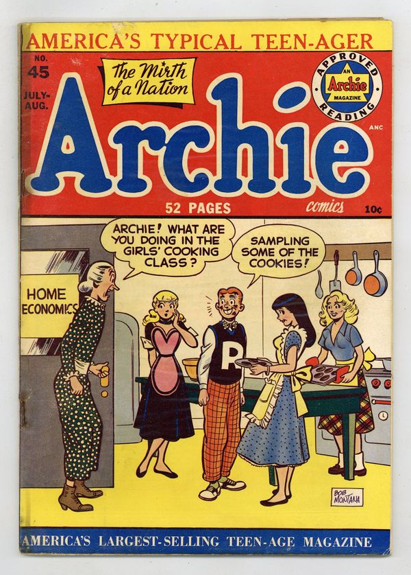 Cover by Bob Montana. Stories by unknown. Art by Sam Schwartz, Bill Vigoda?, George Frese? and unknown. Featuring Archie in: "Scrambled Canastas"; "Southern Fried Archie"; "The Glad Plaid"; "Date Bait"; and "The Red White and Blue Blood"! Plus: Jughead in "The Quiz Kid" (plug for WILBUR COMICS)! Also: 2-page "Hollywood Tattle Tales"! Full color. Cover price $0.10.