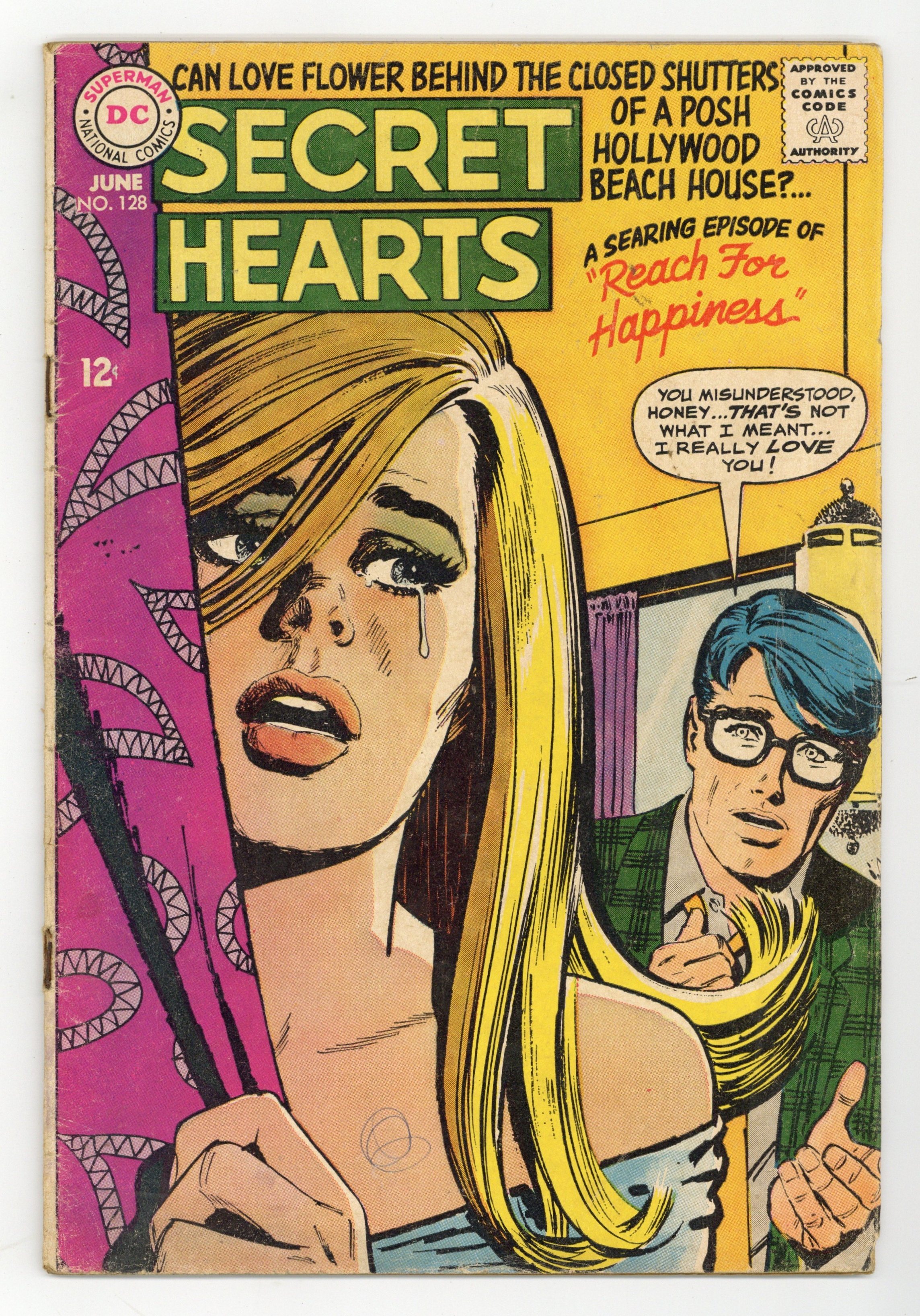 Cover by Jay Scott Pike. Stories by Jack Miller and unknown. Art by Jay Scott Pike, Manny Stallman?, Bill Draut, Tony Abruzzo, George Roussos and unknown. Two Hollywood friends of Karen's late husband Frankie confess that they are in love with Karen in Episode 19 of "Reach for Happiness"! Plus: Sue's ex-boyfriend Jim asks her for another chance, but he is slow to break things off with his new girlfriend Ann, so Sue eventually realizes that Jim isn't to be trusted in "The Memory of Jim!" Also: Margot's architect boyfriend Harry always puts his career ahead of his relationship, but she eventually meets Jim, who always thinks of her first in the reprint story "My Weeping Heart"! And: Mad Mad Modes for Moderns filler. Plus: Letters page by Ann Martin, Counselor-at-Love. 32 pages, full color. Cover price $0.12.