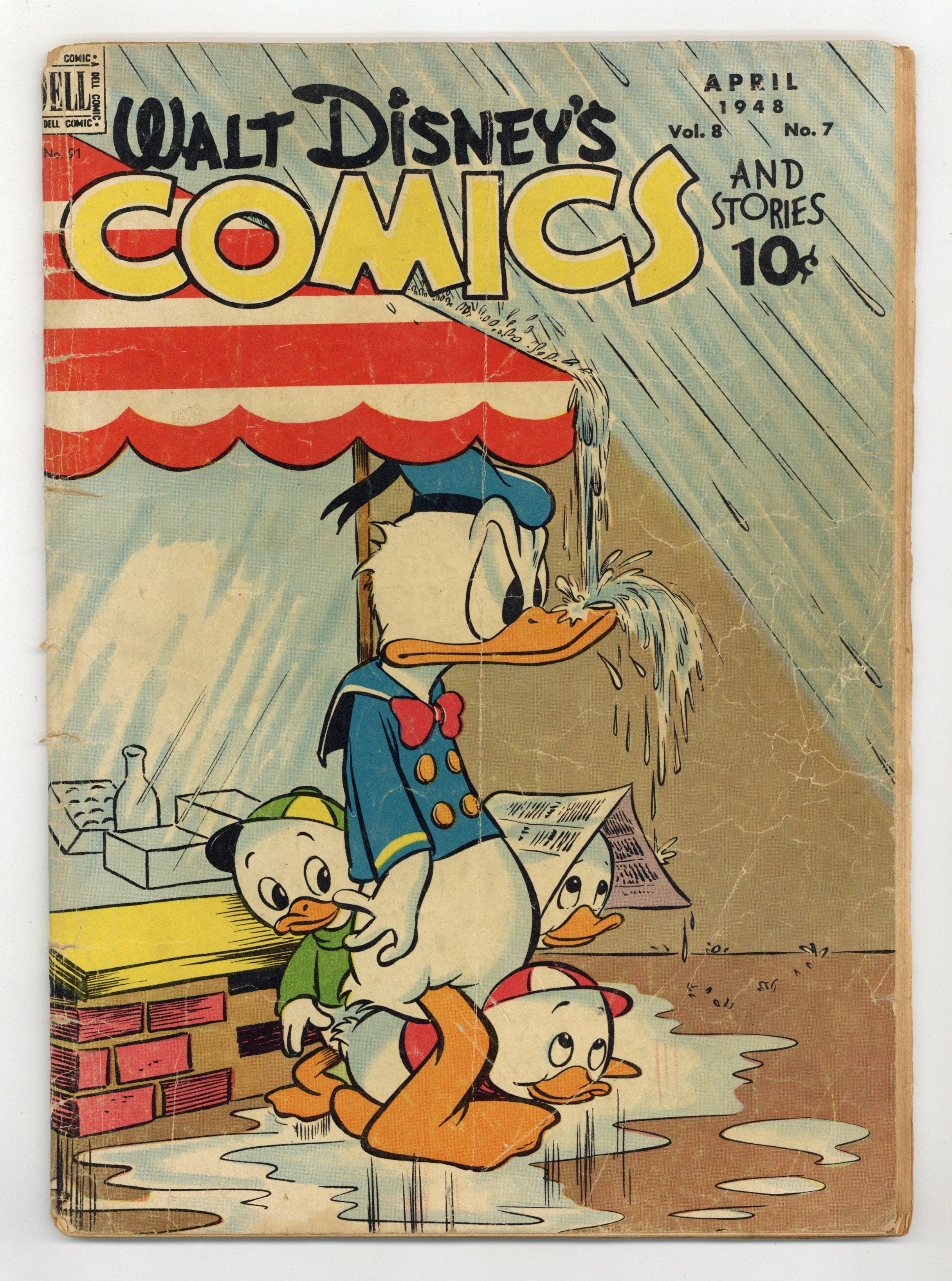 Tags: Disney Ducks & MicePublished Apr 1948 by Dell/Gold Key.$24.00- 1.5" Cumulative spine split. Cover detached. Staple rust. Rust migration.