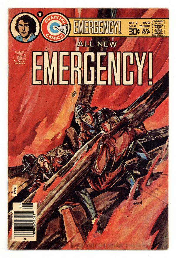 Published Aug 1976 by Charlton Comics Group.$21.00Painted cover by Joe Staton. Stories and art by John Byrne, Demetrio Sánchez Gómez and Joe Gill. The comics version of the popular 1970s TV show about paramedics and firefighters on duty. In an issue-length story, Gage and Desoto try to unwind after long hours at a dangerous blaze. So the last thing they want is the backyard cook-out that Desoto has scheduled for that day. A text story features early art by comics legend John Byrne. Painted cover by E-Man co-creator Joe Staton. The Big Squeeze; Phantom of Rampart Emergency. 32 pages, Full Color. Cover price $0.30.