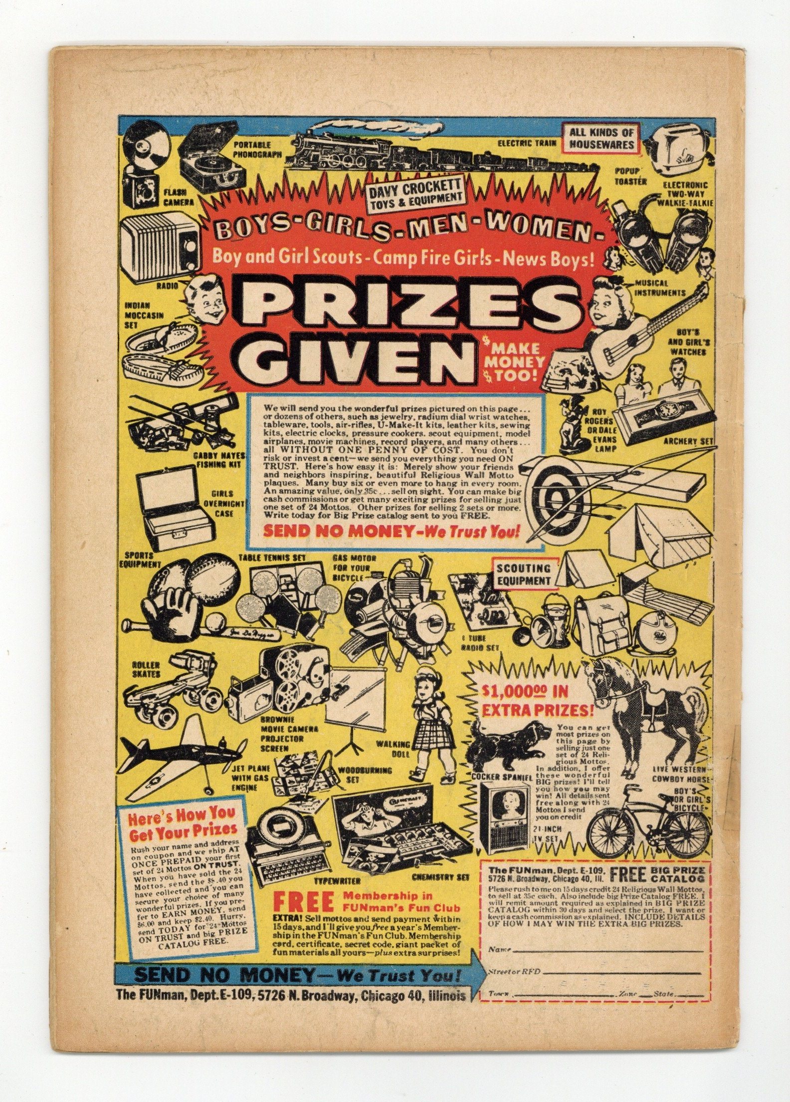 Published Mar 1956 by Charlton Comics Group.$34.00- 7 1/2" Cumulative spine split. Tape along spine interior.