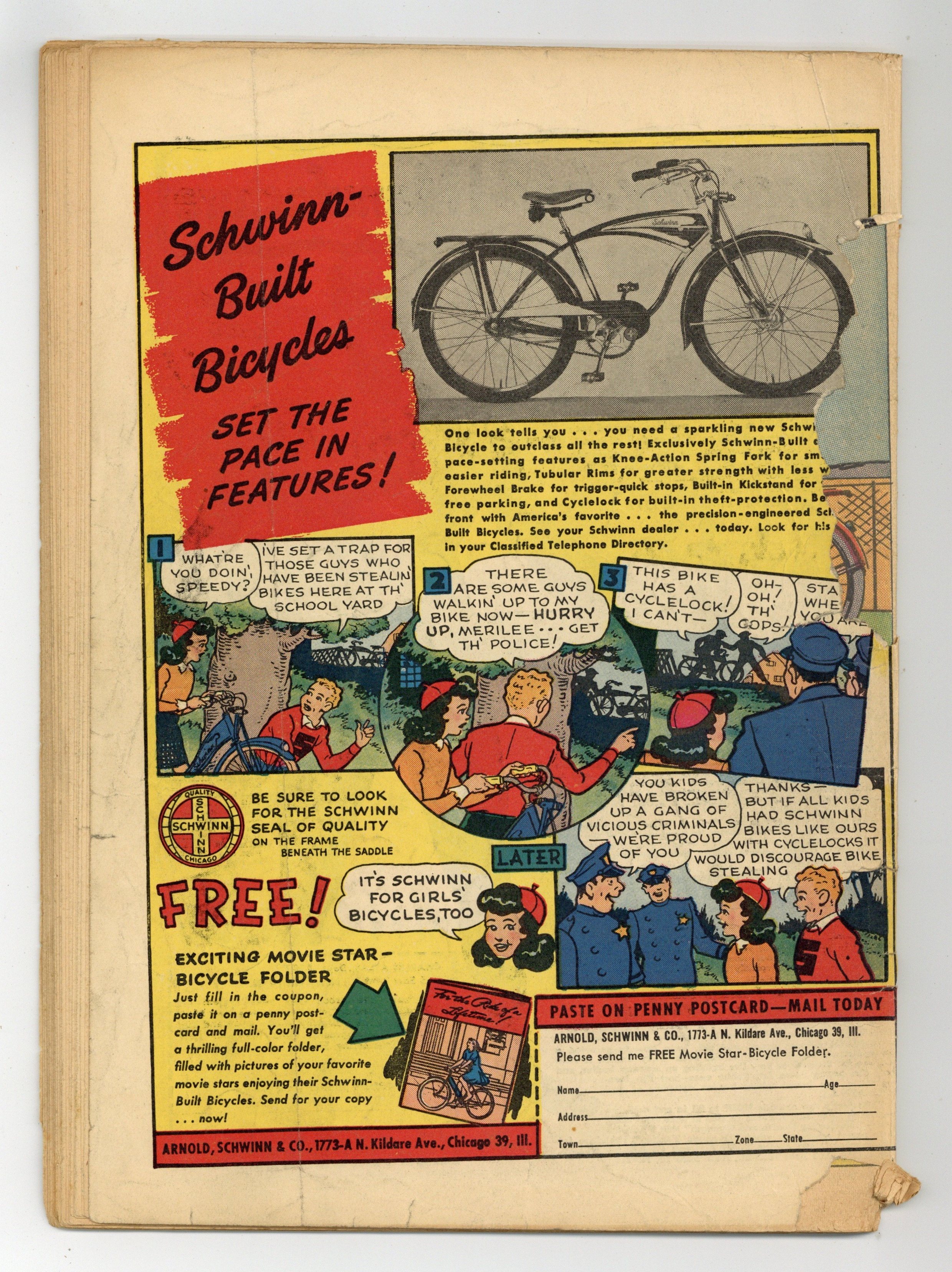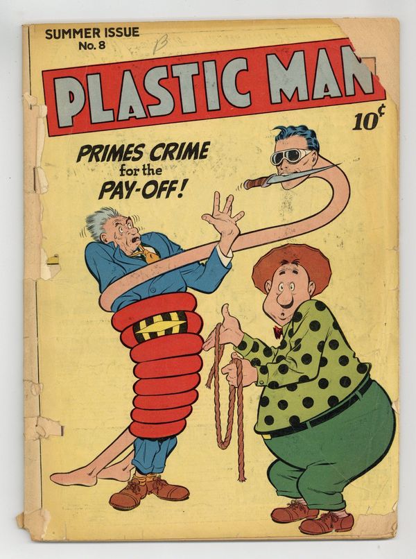 Cover art by Jack Cole. The Hot Rod, script by Gwen Hansen, art by Jack Cole; Police scientist Dr. Ray invents a gun that imbues living creatures with the ability to generate great heat; When Ray comes face to face with the gangster called Hot Rod, the gun caused Hot Rod to burst into flames because of the presence of gunpowder. Concerto For Murder, script by Gwen Hansen, art by Jack Cole; Woozy gets a job playing triangle for a symphony. The Mystery Paint, script by Gwen Hansen, art by John Spranger. Doomsby's Doom text story. The Homeliest Man In the World, script by Joe Millard, art by John Spranger. 52 pgs. $0.10. Cover price $0.10.