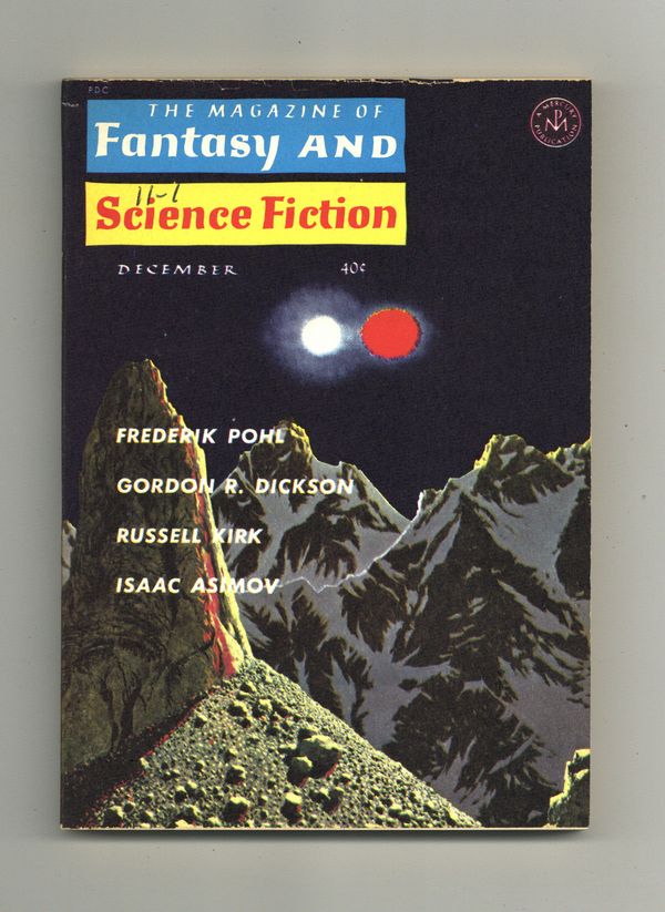 Published Dec 1962 by Mercury Publications.$5.10Volume 23 Issue 6 - December 1962. Cover by Chelsey Bonestell. Fantasy and Science fiction stories by Jim Harmon, Grendel Briarton, Russell Kirk, Felix Marti-Ibanez, Isaac Asimov, Frederik Pohl, Avram Davidson, Sasha Gilien, Gordon R. Dickson, and Henri Damonti. Softcover, 5-in. x 7-in., 130 pages, B&W. Cover price $0.40.