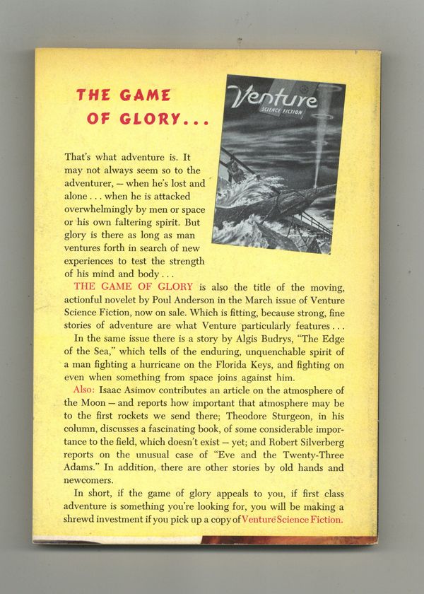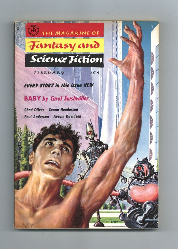 Published Feb 1958 by Mercury Publications.$15.00Volume 14, Issue 2 - February 1958. Cover by Emsh. Fantasy and science fiction stories by Chad Oliver, Anthony Brode, Rog Phillips, Robert Silverberg, Zenna Henderson, Allen Kim Lang, and Avram Davidson. Softcover, 5 1/2-in. x 7 1/2-in., 130 pages, B&W. Cover price $0.35.