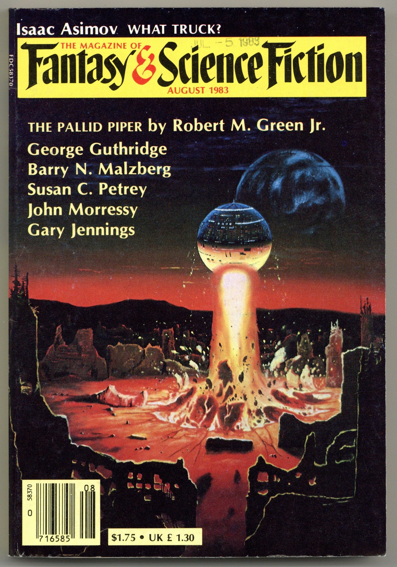 Published Aug 1983 by Mercury Publications.$5.60Volume 65, Issue 2 - August 1983. Cover by Gabriele Berndt. Fantasy and Science Fiction stories by Mark Wheeler, Robert M. Green Jr, Warren Brown, John Morressy, Barry N. Malzberg, Gary Jennings, Chet Williamson, Susan C. Petrey and George Guthridge. Science article by Isaac Asimov. Softcover. 5-in. x 7-in., 162 pages, text (with B&W illustrations). Cover price $1.75.