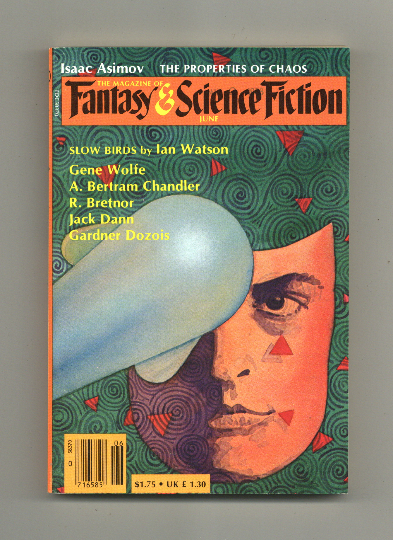 Volume 64, Issue 6 - June 1983. Cover by Michael Garland. Fantasy and Science Fiction stories by Ian Watson, Gardner Dozois, Jack Dann, A. Bertram Chandler, Reginald Bretnor, B.L. Keller, Fred Singer, Rene Rebetez, Gene Wolfe, Richard Mueller and James Patrick Kelly. Science article by Isaac Asimov. Softcover. 5-in. x 7-in., 162 pages, text (with B&W illustrations). Cover price $1.75.