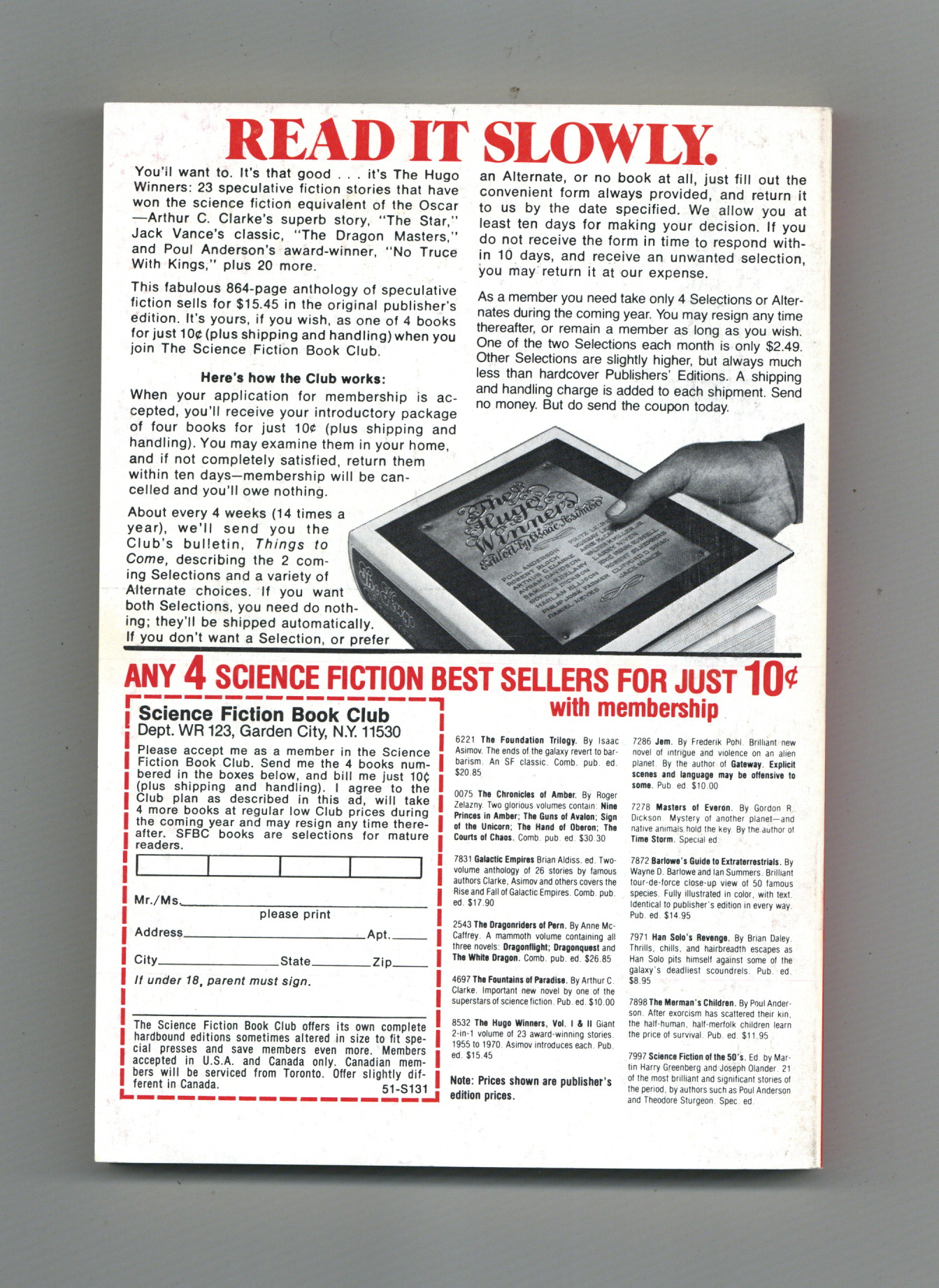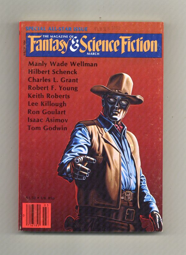 Published Mar 1980 by Mercury Publications.$8.49Volume 58, Issue 3 - March, 1980. Cover by Barclay Shaw. Fantasy and science fiction stories by Hilbert Schenck, Keith Roberts, Many Wade Wellman, Tom Godwin, Ron Goulart, Charles L. Grant, David Lubkin, Robert F. Young and Lee Killough. Science article by Isaac Asimov. 5-in. x 7-in., 162 pages, Text (with B&W illustrations). Cover price $1.50.