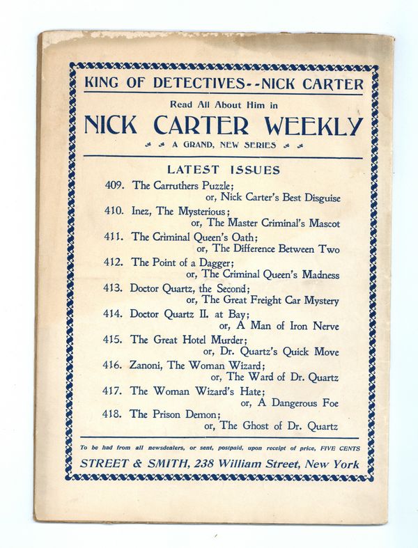 Published Nov 1904 by Street & Smith.$25.00- Water damage: Slight. Staple rust: Slight.