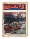 December 3, 1904. Written by Burt L. Standish (Gilbert Patten). Tip Top Weekly was promoted as "An Ideal Publication for American Youth," and was primarily devoted to the continuing adventures of student Frank Merriwell, who started at a fictional New England academy and then went to Yale, eventually becoming an international adventurer. Newsprint. 8.25-in. x 10.5-in. 32 pages, Text. Cover price $0.05.