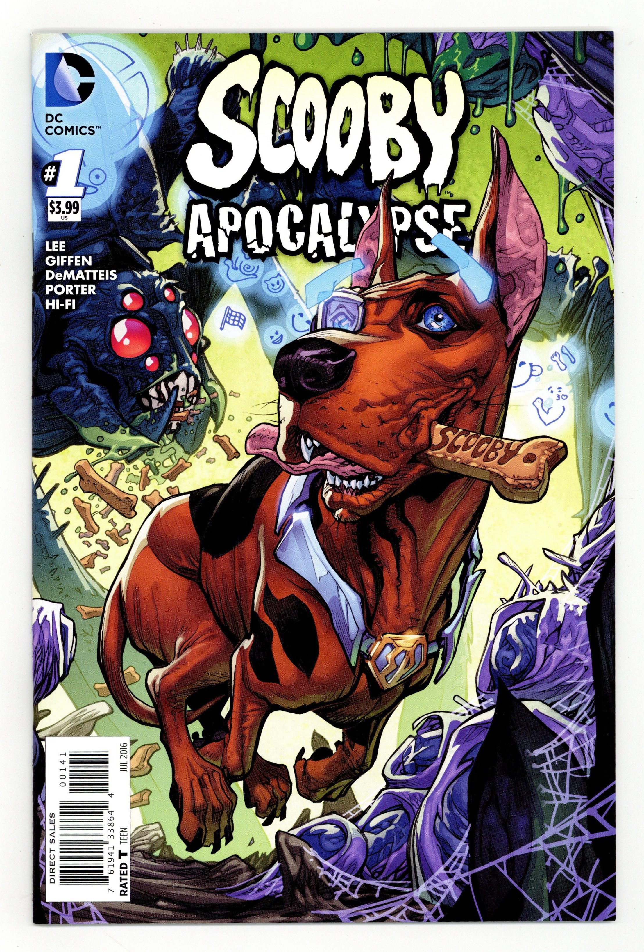 Written by Jim Lee, Keith Giffen and J.M. DeMatteis. Art and Cover by Howard Porter. Those meddling kids-Fred, Daphne, Velma, Shaggy, and their dog, Scooby-Doo-get more ghost-debunking than they bargained for when faced with a fundamental change in their world. The apocalypse has happened. Old rules about logic no longer apply. The creatures of the night are among us, and the crew of the Magical Mystery Machine has to fight to survive-because in the apocalyptic badlands of the near-future, the horrors are real! This new monthly series takes Scooby and the gang to a whole new level and features character designs by comics superstar Jim Lee! 40 pages, full color, Rated T Cover price $3.99.