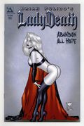 Premium cover. by Brian Pulido & Ron Adrian. The bitch is back as the original Lady Death continues with an all-new epic! Lady Death, duped by her mentor Wargoth and almost killed, is sick and tired of his manipulative ways. She plots a fitting revenge that has a most unexpected result. This issue also introduces Lady Death's new sword, Death-Bringer! Meanwhile, the evil warlock, Sagos, conquers another city in the Blacklands, closing in on his quest for total domination and bringing him on a collision course with Lady Death and her allies! Lady Death never looked so good with stellar art by superstar Ron Adrian. As well as the Regular Cover by Adrian, it's also available with a Wraparound Cover by Ron Adrian, a Juan Jose Ryp Cover, and a special Premium Edition with a cardstock cover by Paulo Siqueira. REGULAR?32pgs, FC (3 of 4)SRP: $3.99 WRAPAROUND?32pgs, FCSRP: $3.99 RYP?32pgs, FCSRP: $3.99 PREMIUM?32pgs, FCSRP: $9.99
